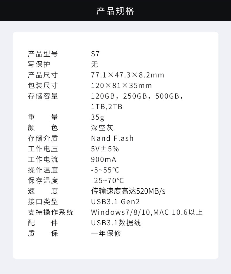 [Поддержка MAC WTG] Patriot S7 Мобильный твердотельный жесткий диск 250G Apple ноутбук SSD Мобильный телефон Внешний внешний внешний тип C Совместимый с высокоскоростной высокоскоростной USB3.0/3.1