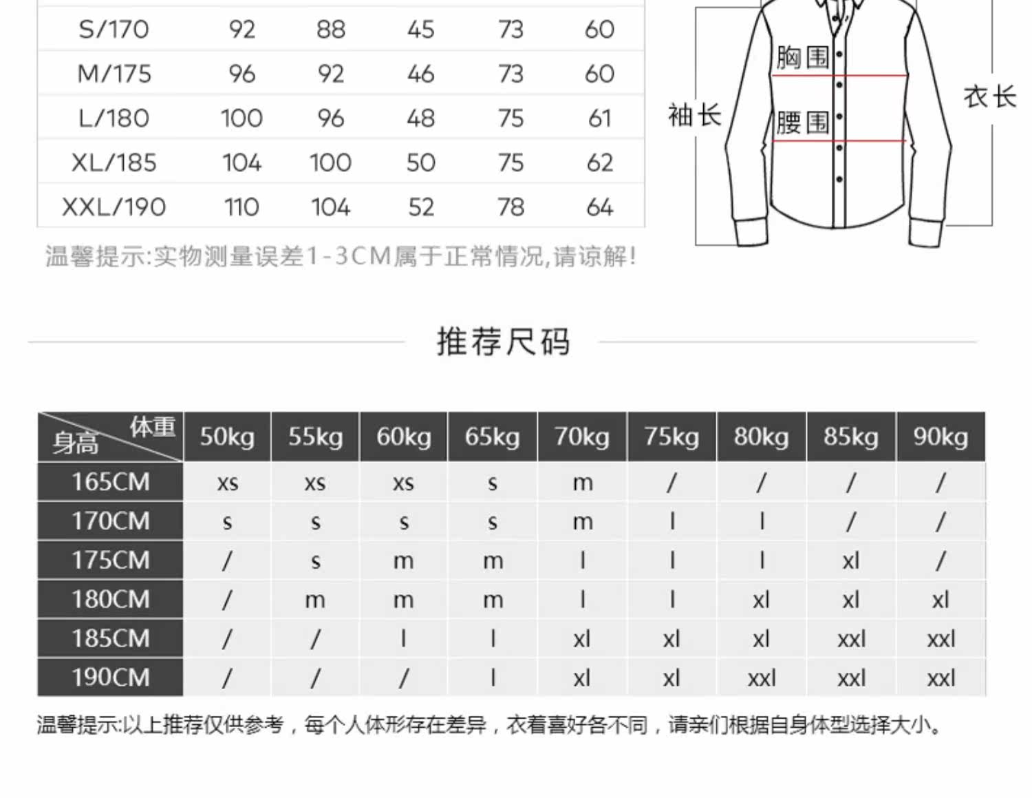 - XL/185 L/180 M/175