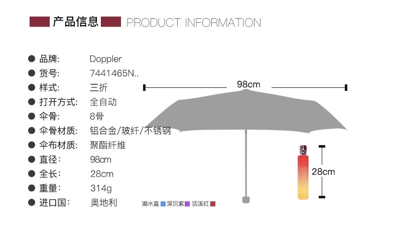 [Прямой бизнес] Австрийский оригинальный импортный допплеровский зонтик автоматический трехкратный зонтик для удобства и изобретательности для мужчин и женщин