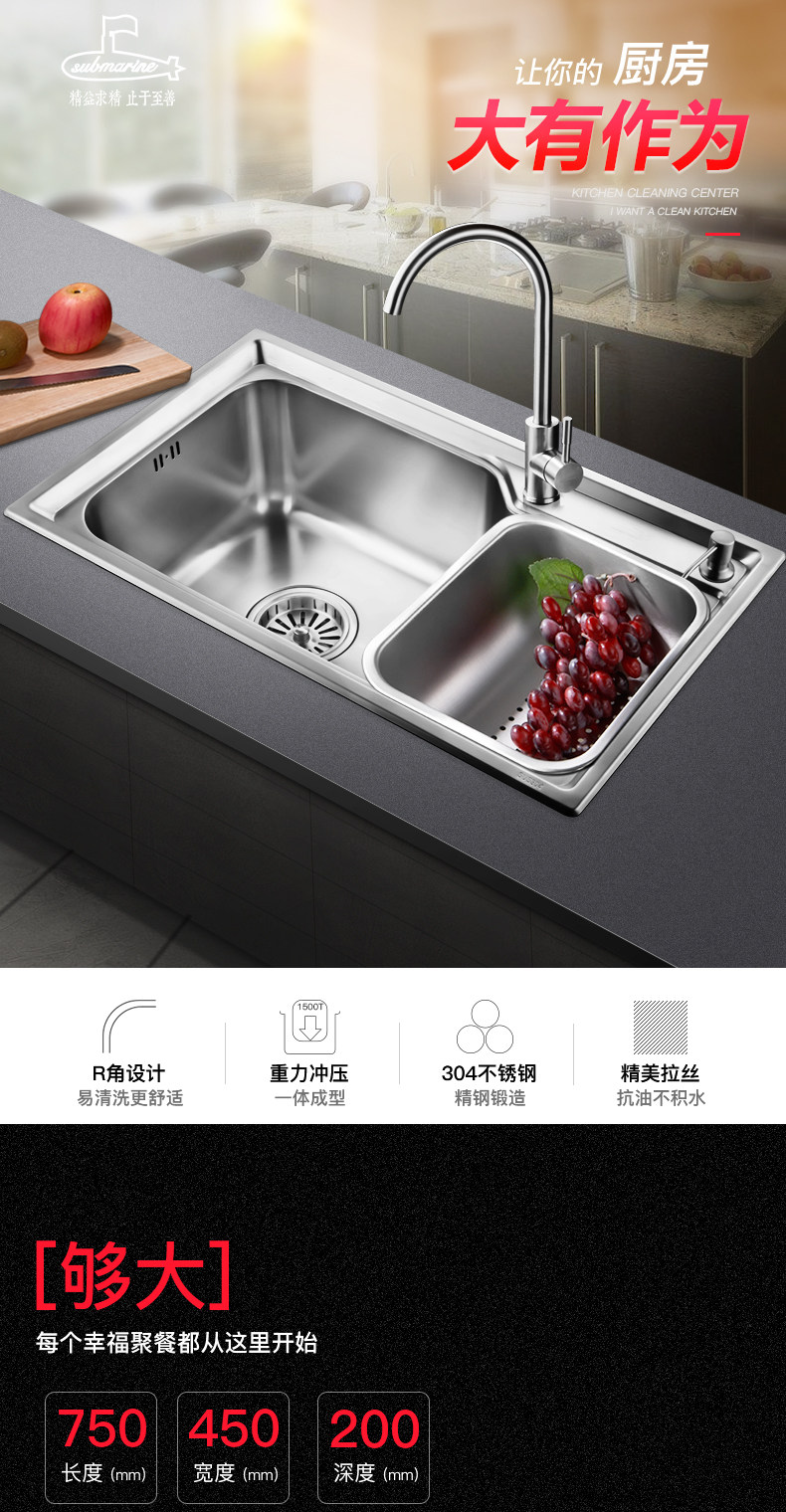 Подводная лодка 304 раковина из нержавеющей стали двойной бассейн с двойным баром в бассейне с двумя горшками в горшках бассейн