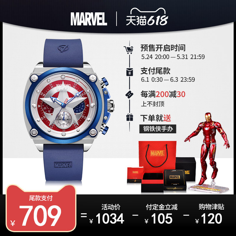 Marvel Union Watch Сказа студента Marvel Genuine Reunion Series Cool Captain America Captain Watch Man