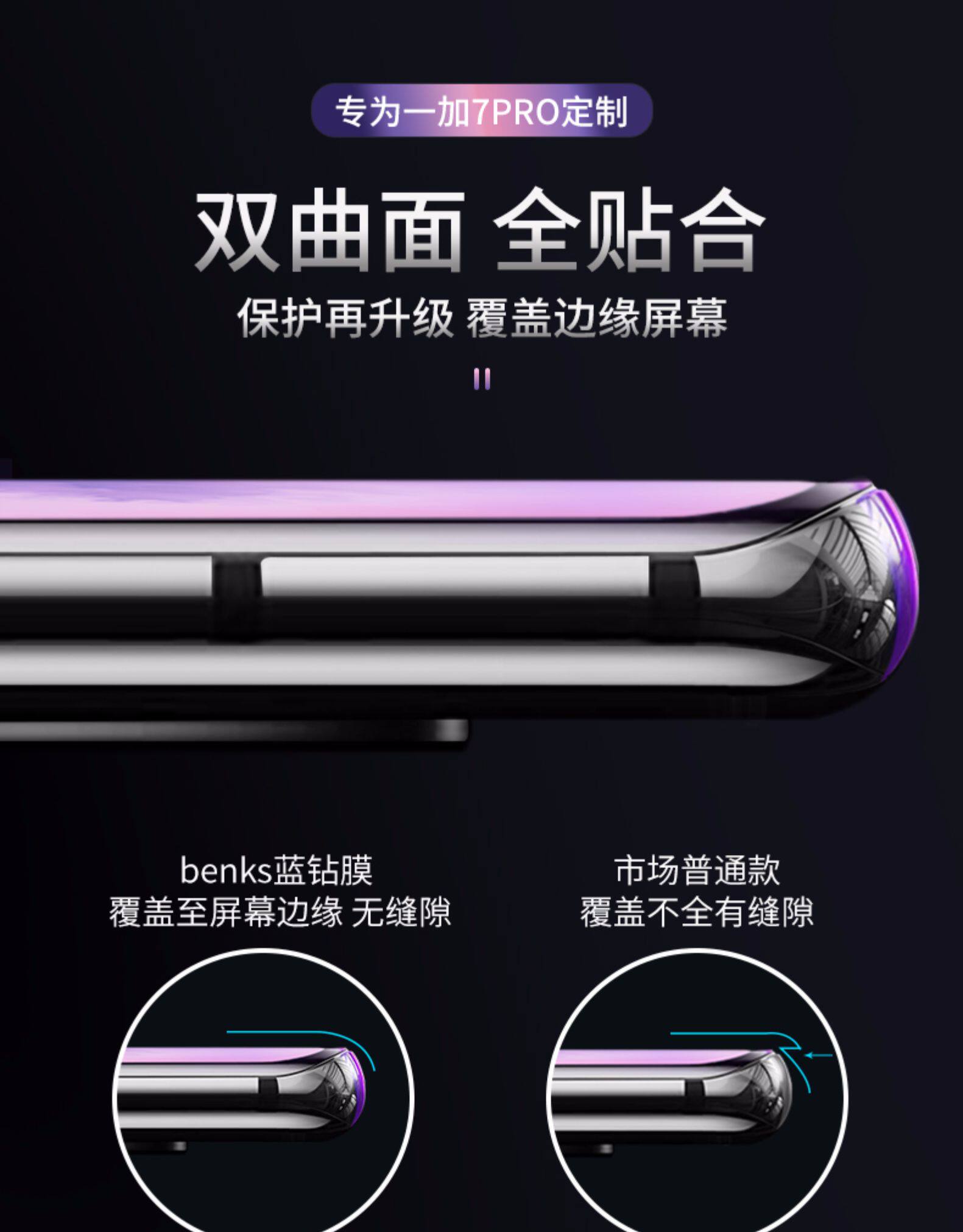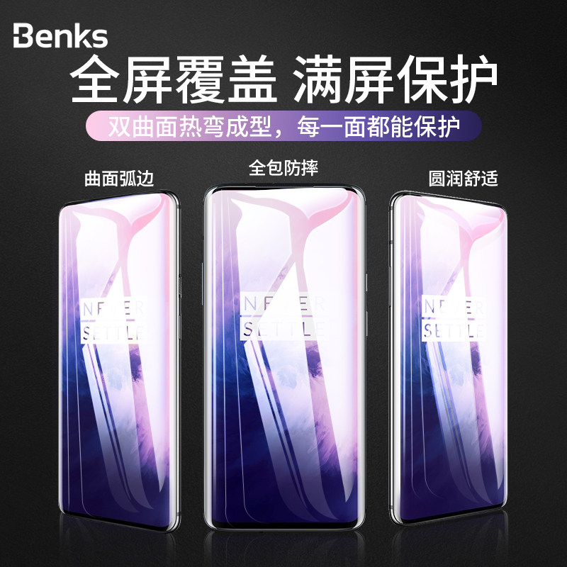 Бенкс подходит для OnePlus 7tPro, закаленная пленка 1+7PRO Полно -экрановое покрытие с полным экраном мобильной пленки OnePlus 7 OnePlus 7 Pro Hot -Curved Surface Hydrocoagotic отпечатка UV Оригинальный стеклянный защитный пленка