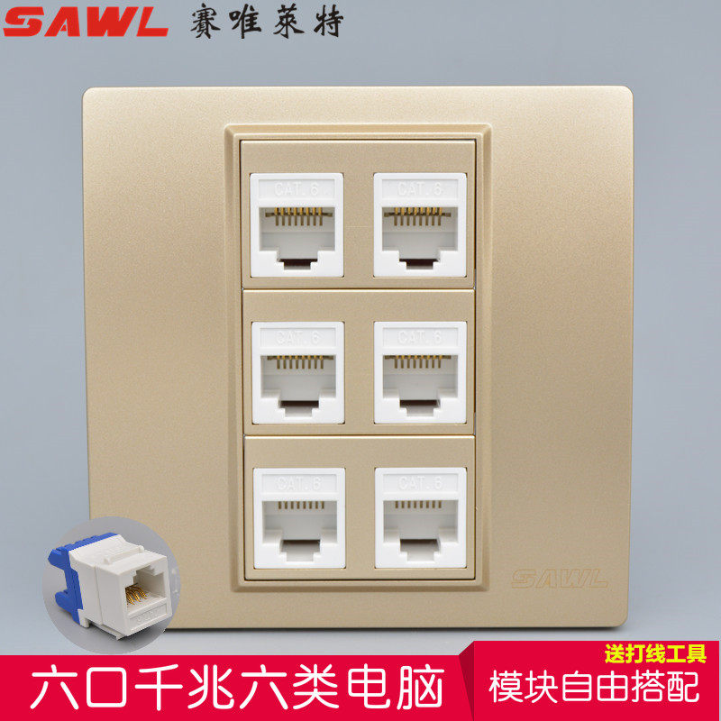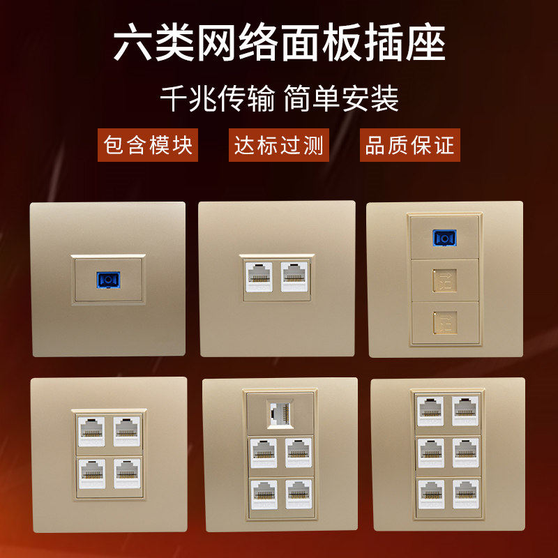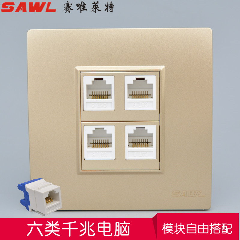 Шампанское -Колорированное 6 -тип компьютерного сокета 86 однодневное четырехпортовое оптическое волоконно -гигабитное гигабитное сетевая сеть Скорость CAT6 Gigabit Network Port