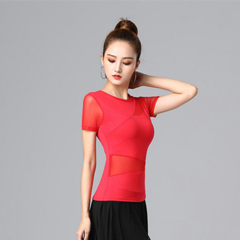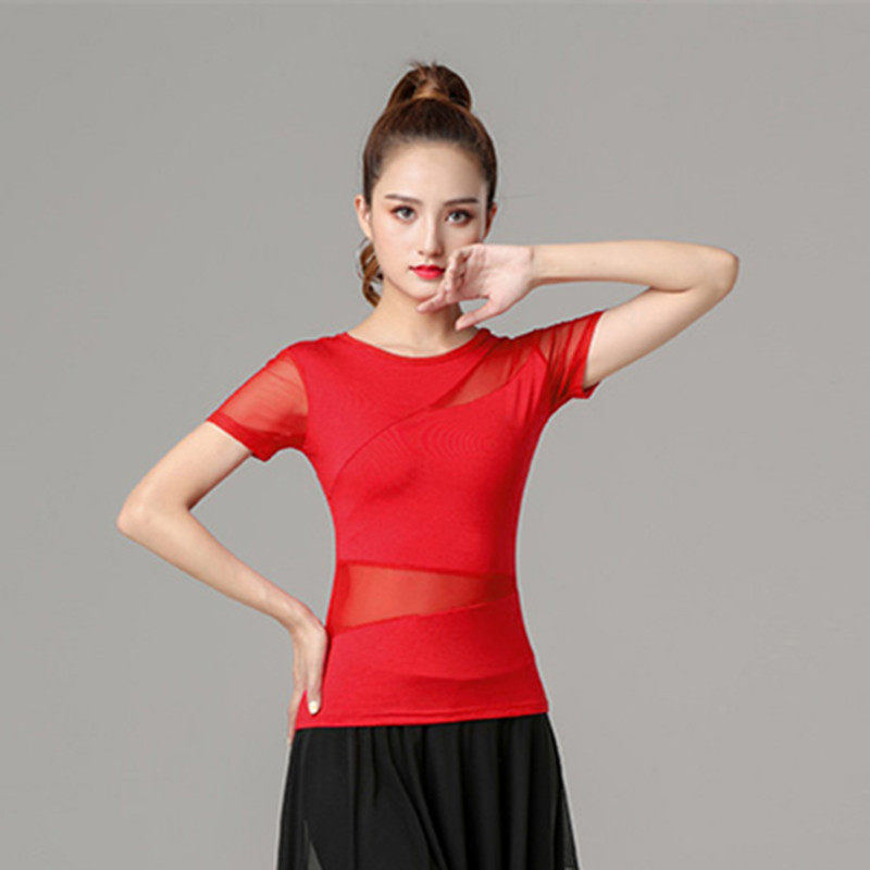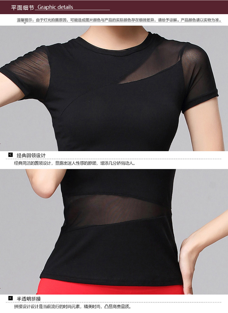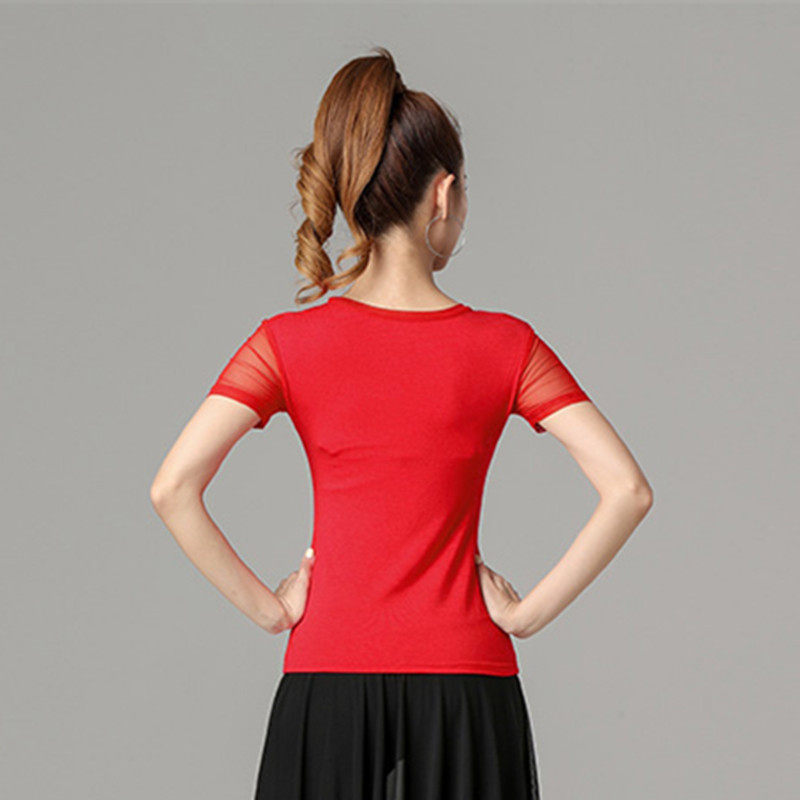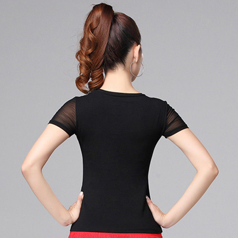 Спортивная одежда с круглым воротником, танцующая футболка, короткий рукав, облегающий крой