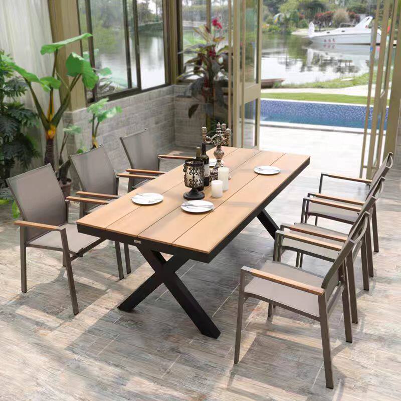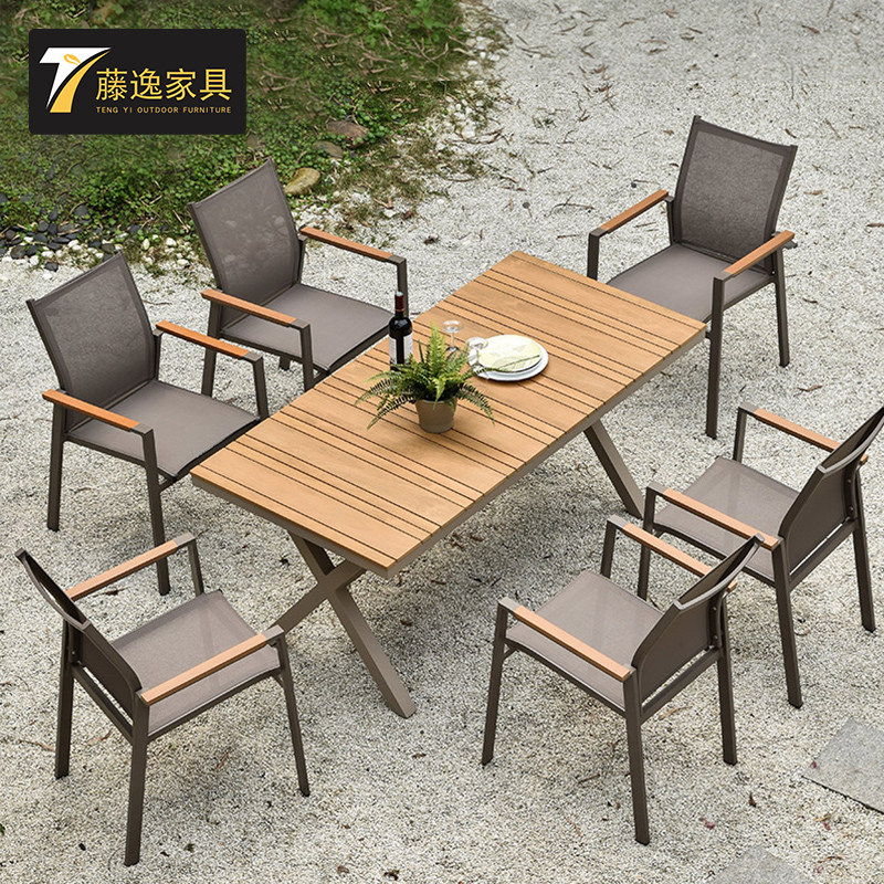 Столы и стулья на открытом воздухе, двор, открытый балкон, кофе, отдых на свежем воздухе 𫔮Комбинация садового стола и стула из алюминиевого сплава, пластика, дерева