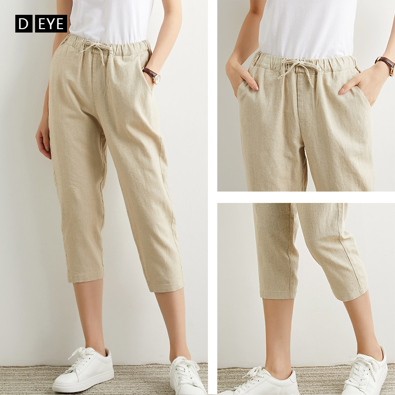 Летние шелковые штаны для отдыха, из хлопка и льна, сезон 2021, оверсайз, эластичная талия, свободный прямой крой