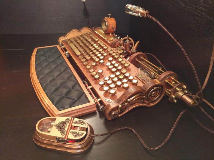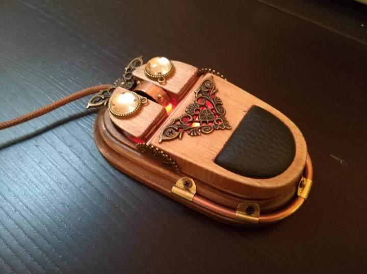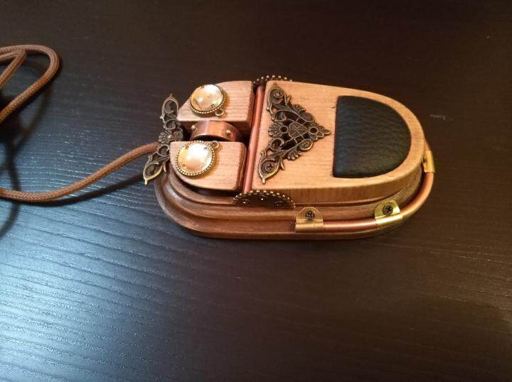 Эта мышь подходит для любого компьютера, ноутбука или планшета.Он полностью подходит для клавиатуры Steam Punk, которую я сделал, которую можно найти здесь.Изготовлен из обычной ПК мыши, используя древесину, твердую латунь, медь, металл и дерево.