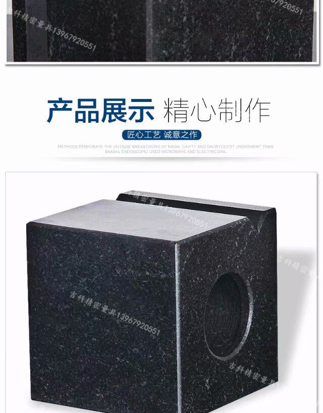 - Гранитная квадратная коробка широко используется при осмотре параллелизма компонентов, вертикальности и вспомогательных заготовков. Как правило, заготовка, как правило, та же квадрат или кубики длины края. Цилиндр.