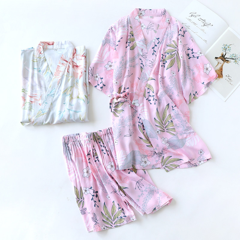Японское кимоно, пижама, хлопковые шорты, тонкие штаны, комплект