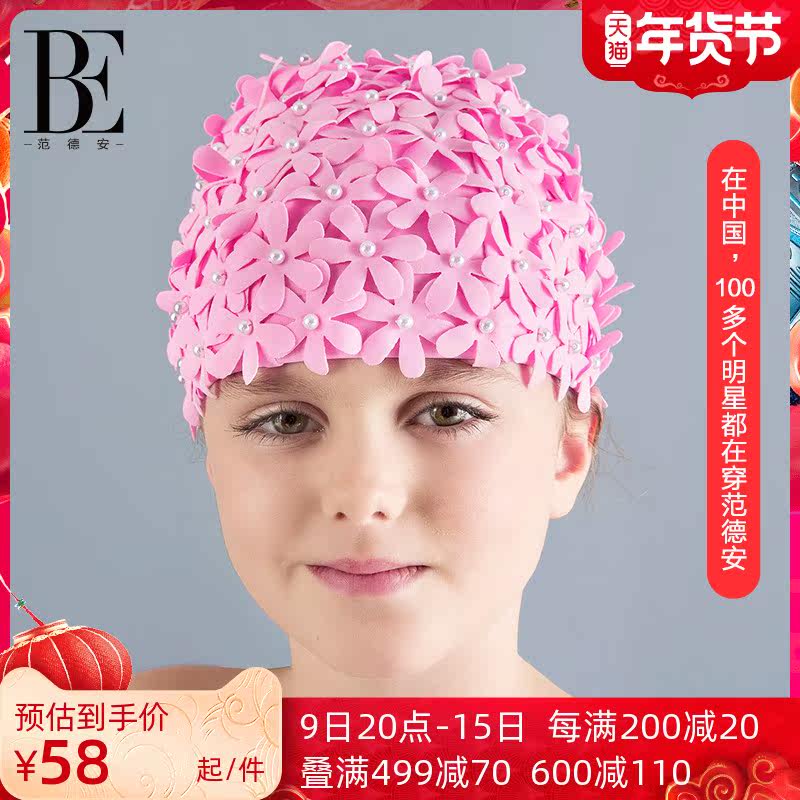 Шапочка для плавания Fan De'an для девочек, красивая и мечтательная шапочка для плавания с лепестками ручной работы в стиле принцессы, игривая, милая и розовая.