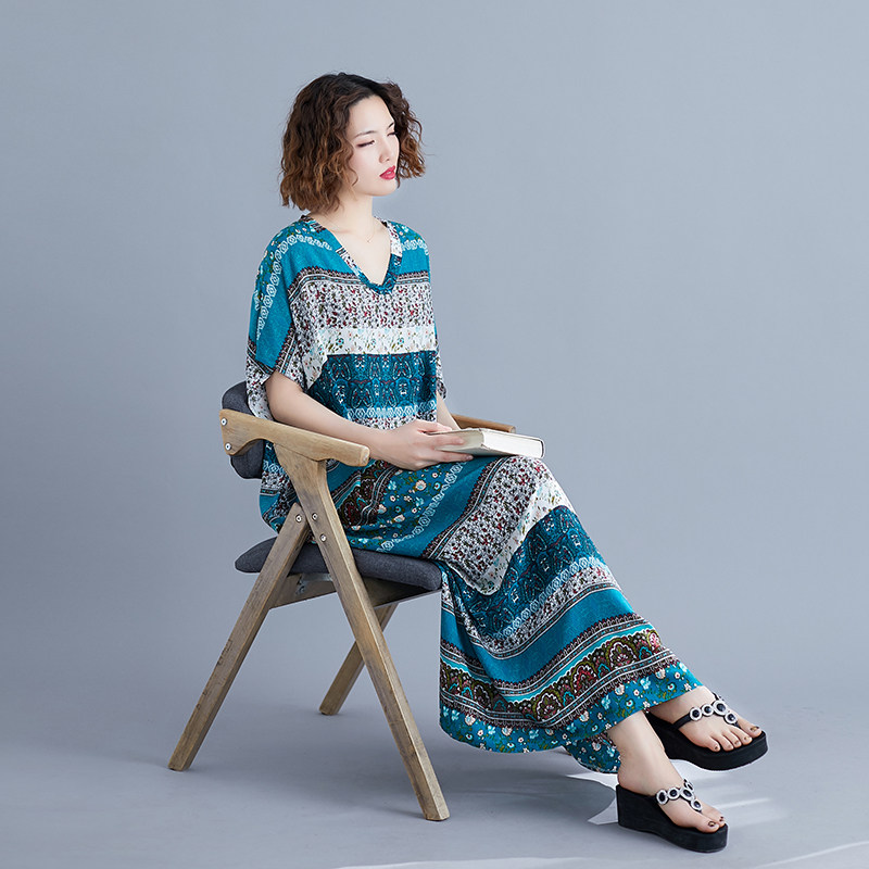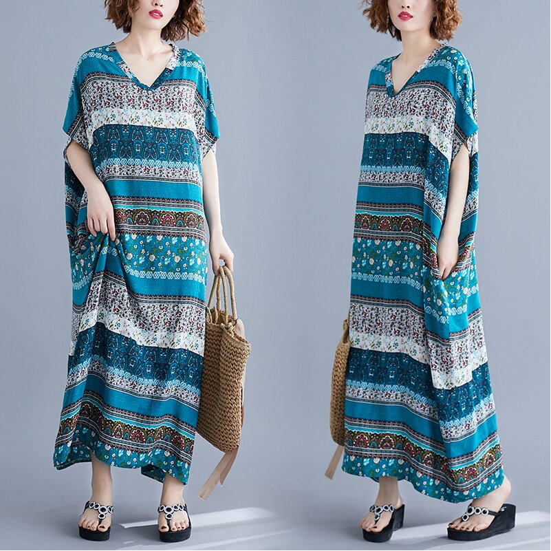 Ретро длинная юбка, пляжное платье, оверсайз, средней длины, V-образный вырез