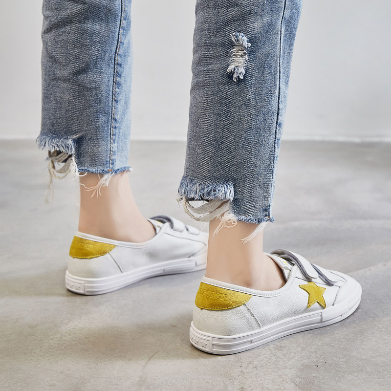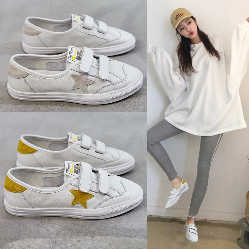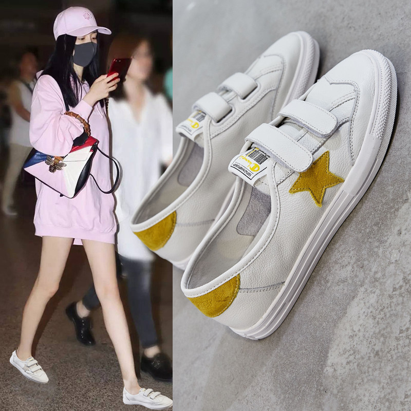 Осенняя летняя белая обувь на липучке, универсальные румяна, 2022, из натуральной кожи, популярно в интернете