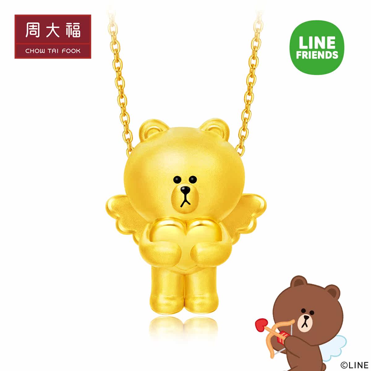 周大福 IP Union Line Friends Angels, держащие подвеску из бурого медведя золота R22773