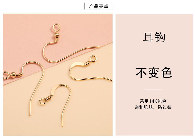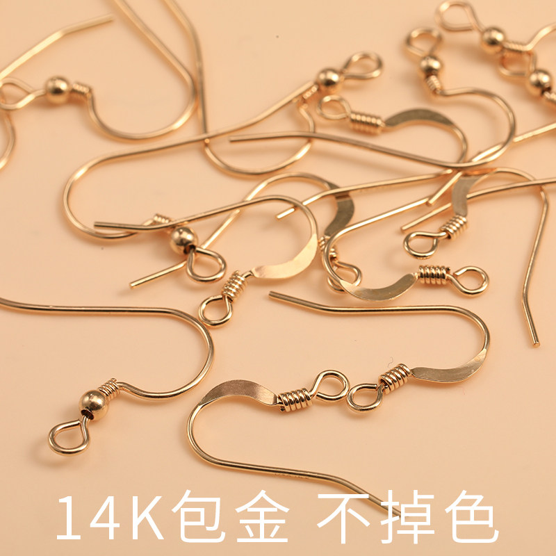 Цвет: Один -14K пакетный золото плоского уха, Пара крючков для ушей с круглыми бусинами, наполнители из 14-каратного золота