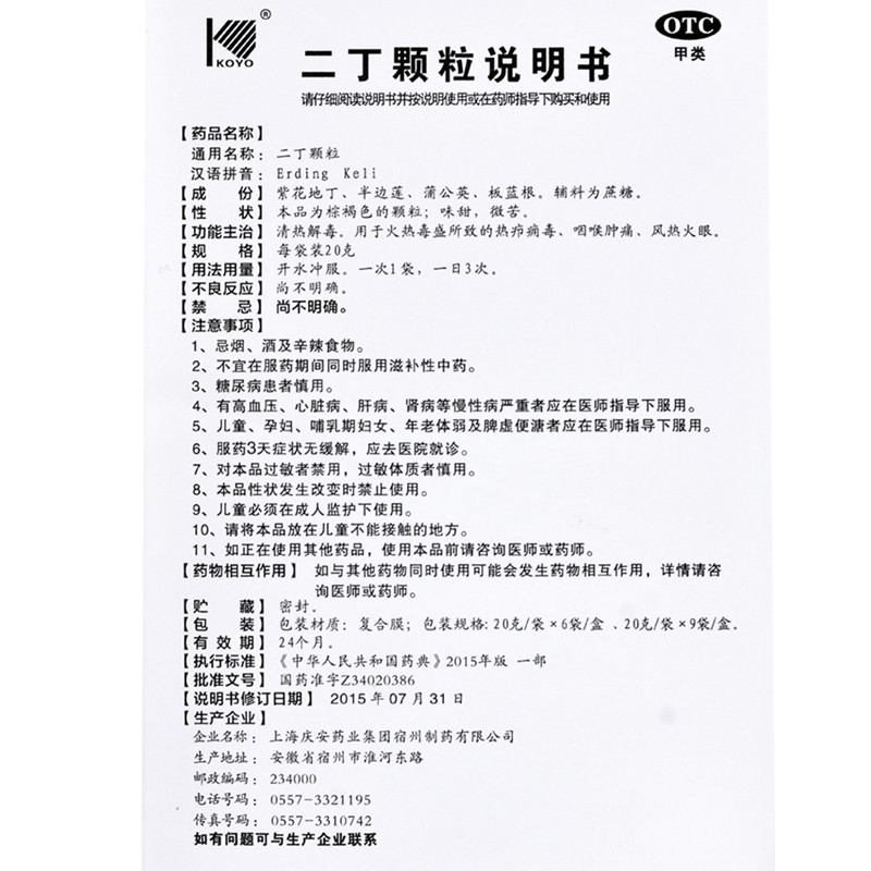 Койо -эридирующие гранулы 20 г*9 мешков очищают тепло, детоксикация горла, боль, боль, ветер, жаркое тепло 疖 Яд