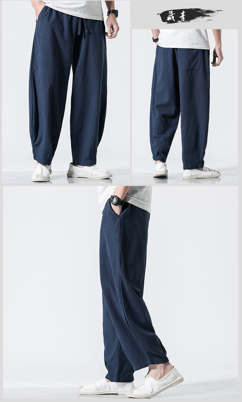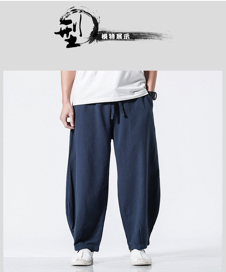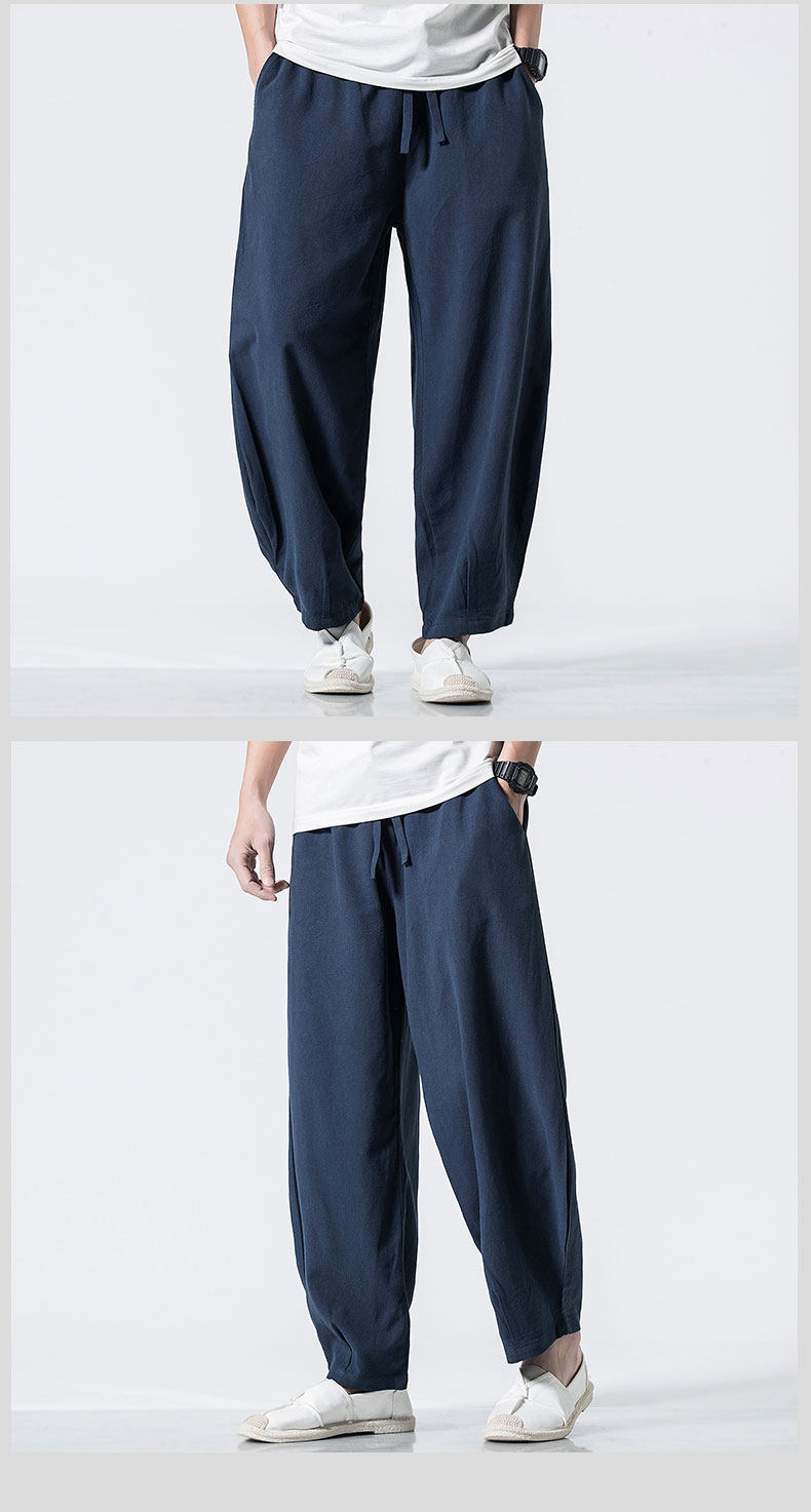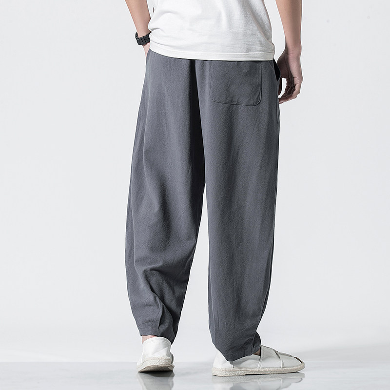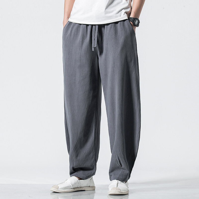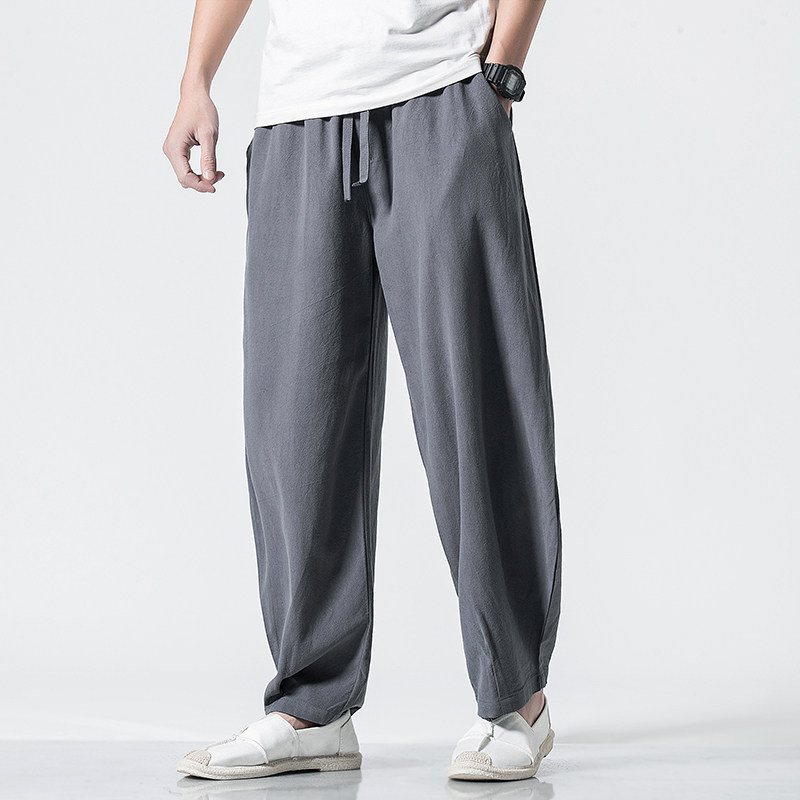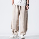 Китайские осенние штаны для отдыха, ретро фонарь, китайский стиль, большой размер, свободный крой, из хлопка и льна