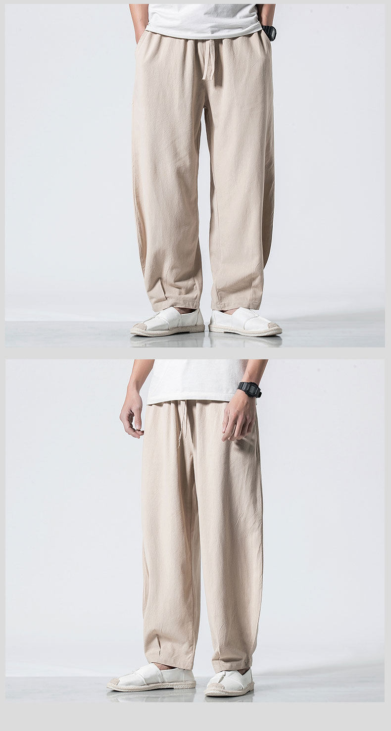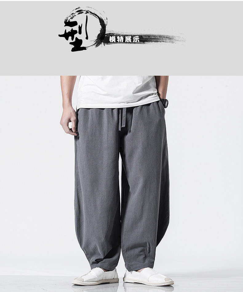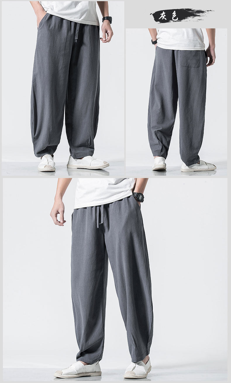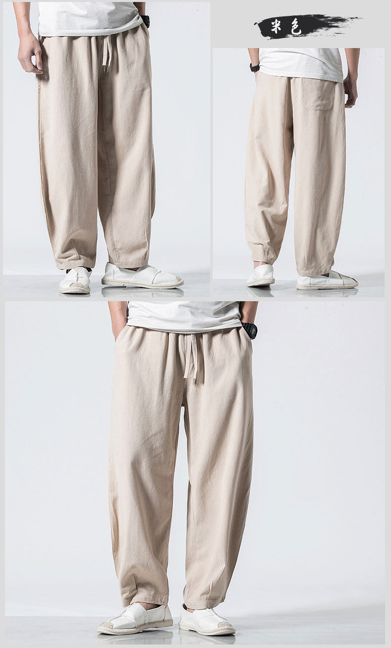 Китайские осенние штаны для отдыха, ретро фонарь, китайский стиль, большой размер, свободный крой, из хлопка и льна