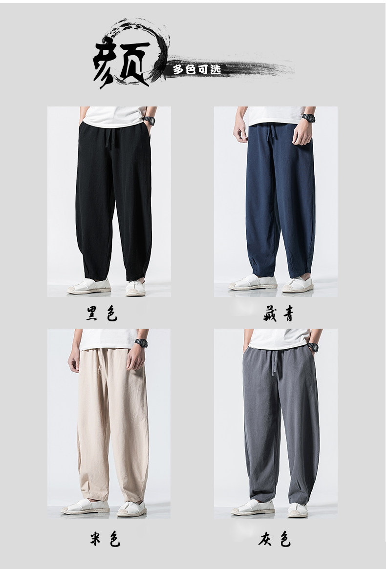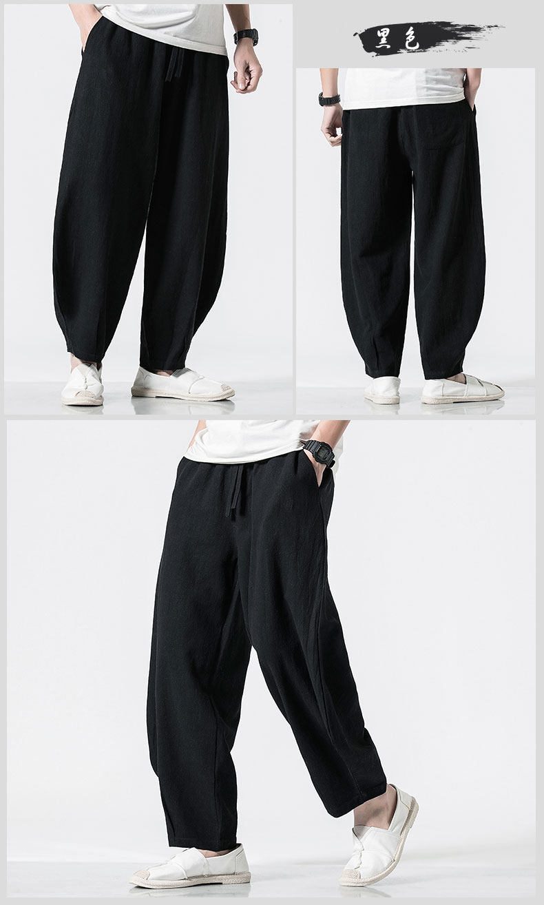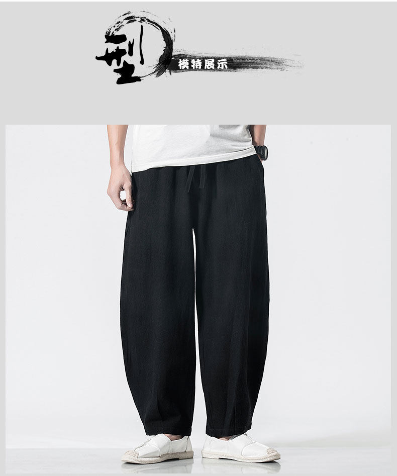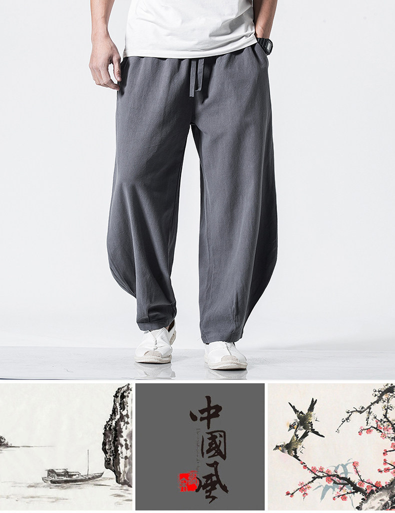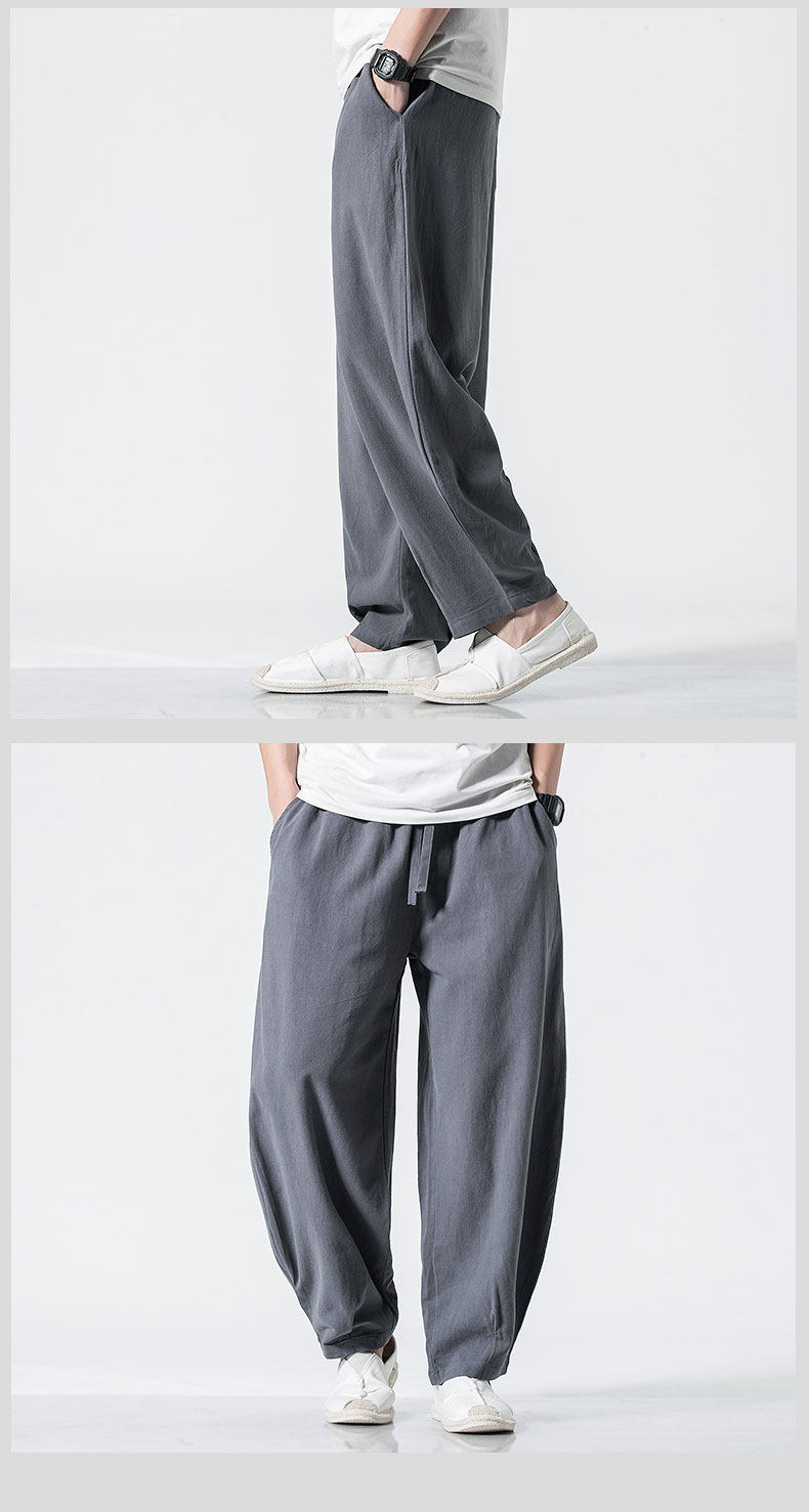 Китайские осенние штаны для отдыха, ретро фонарь, китайский стиль, большой размер, свободный крой, из хлопка и льна