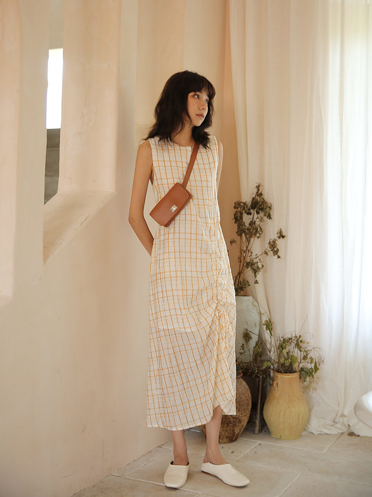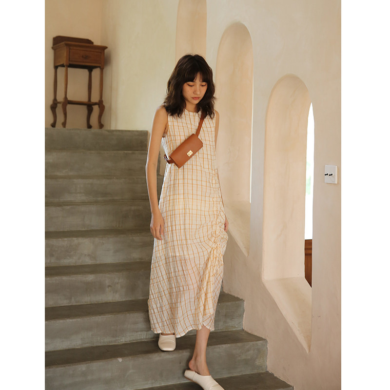 Ретро платье без рукавов с круглым воротником, летняя юбка, на шнурках