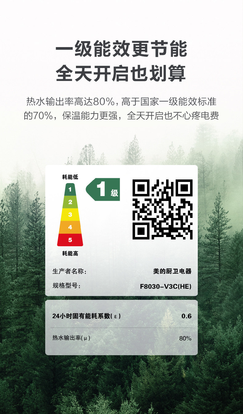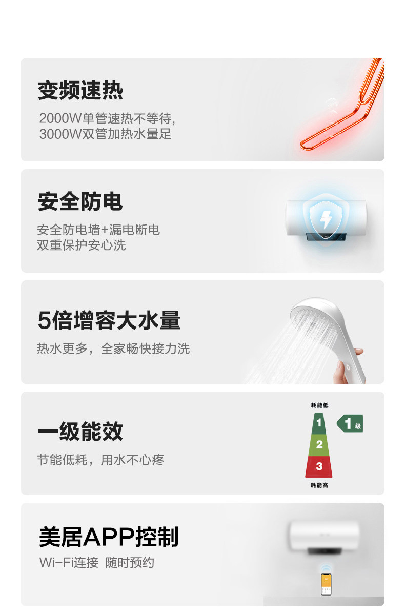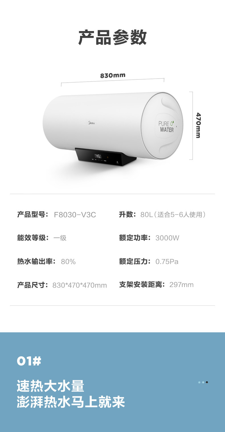 Midea 80L -литр V3C частота частоты частоты частоты частоты частоты частоты водонагревателя Электрическое домашнее купание умное домашнее прибор