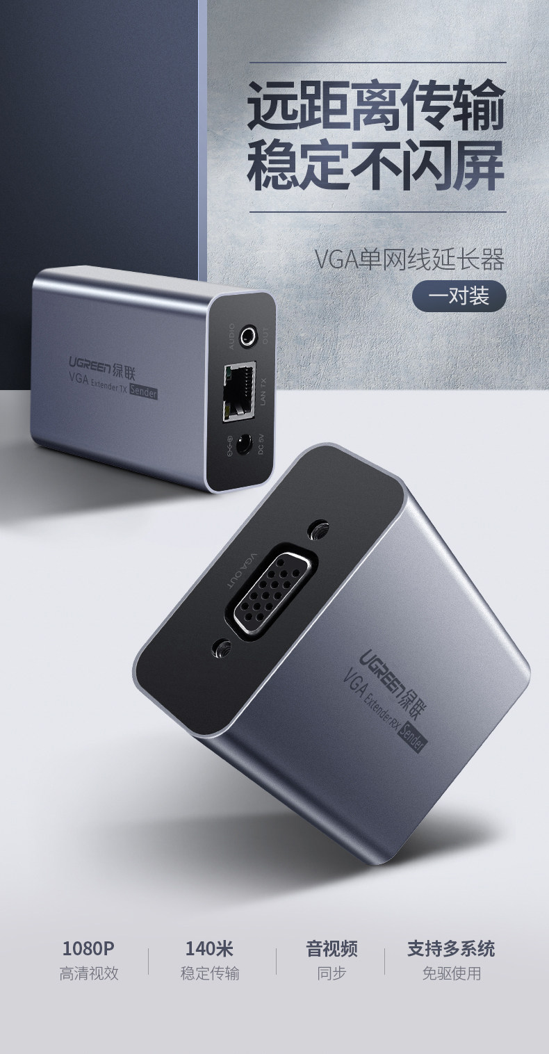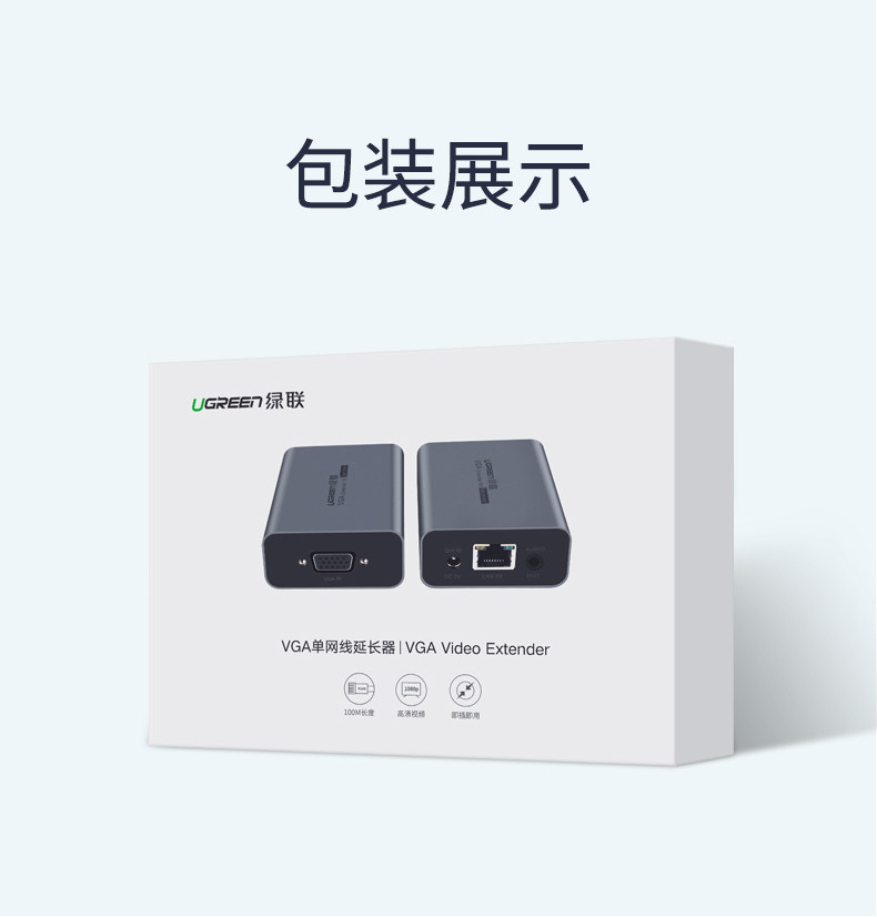 Green Union VGA Extender Network Cable Network Audio Ride RJ45 Сетевой порт дисплей видео 50 -метров 1080p Высокий ретрансляционный кабель среднего ретрансляционного кабеля усилителя усилителя усилителя усилителя усилителя усилителя удлинителя HDMI усилитель усилителя усилителя