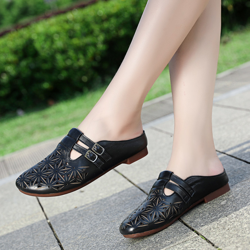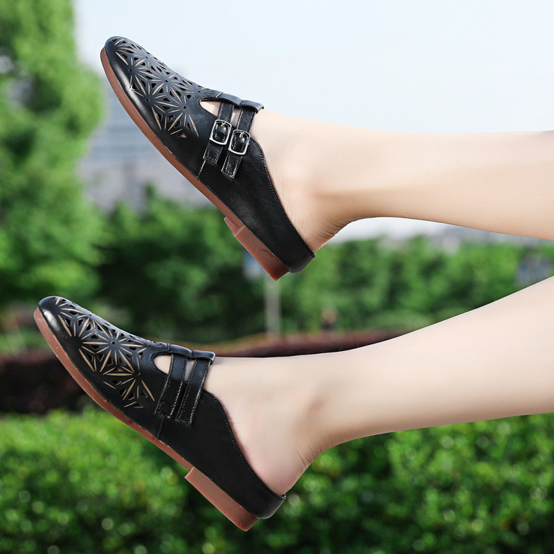 Слайдеры, летние тапочки для отдыха для матери, из натуральной кожи, большой размер, мягкая подошва