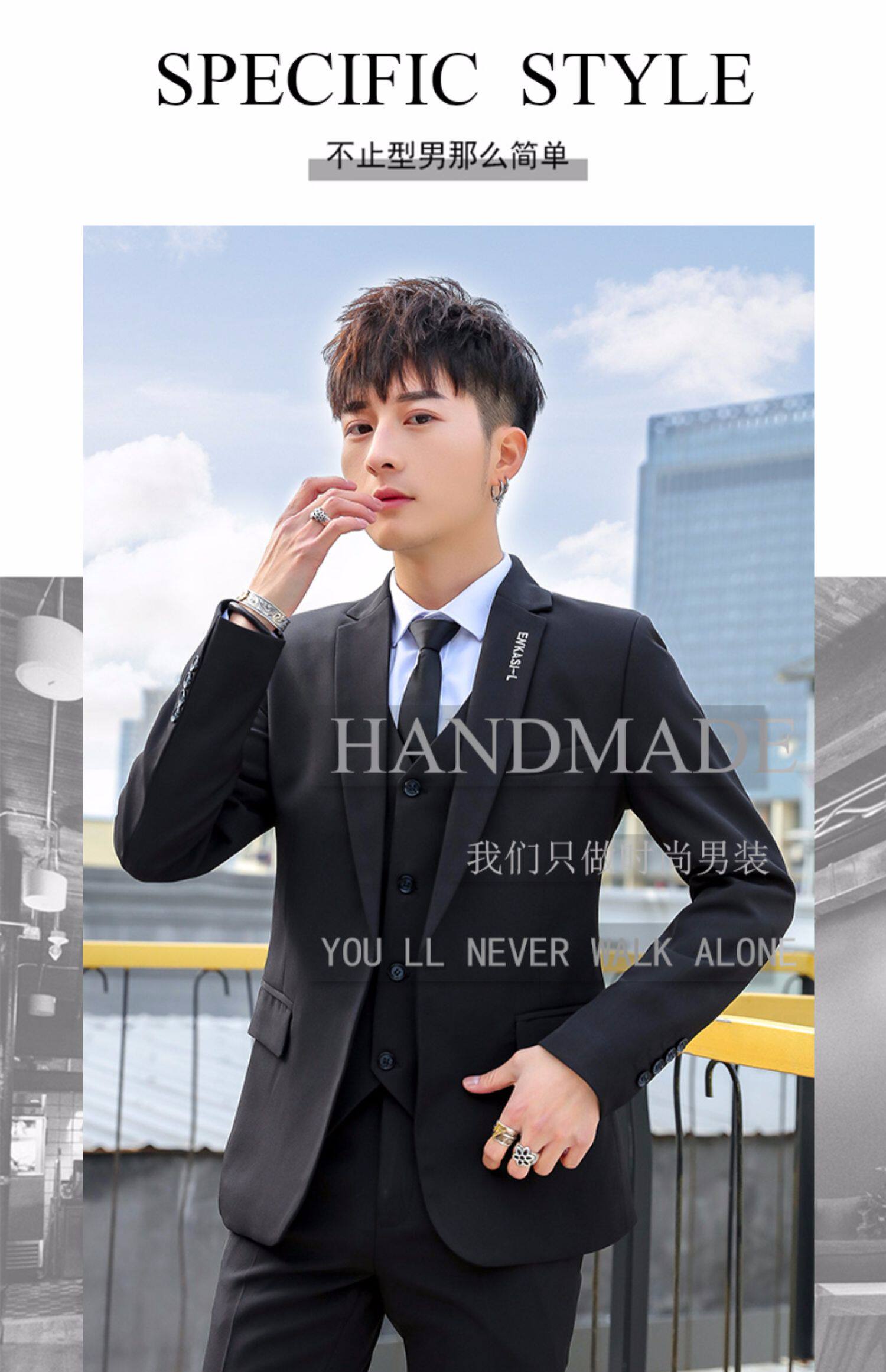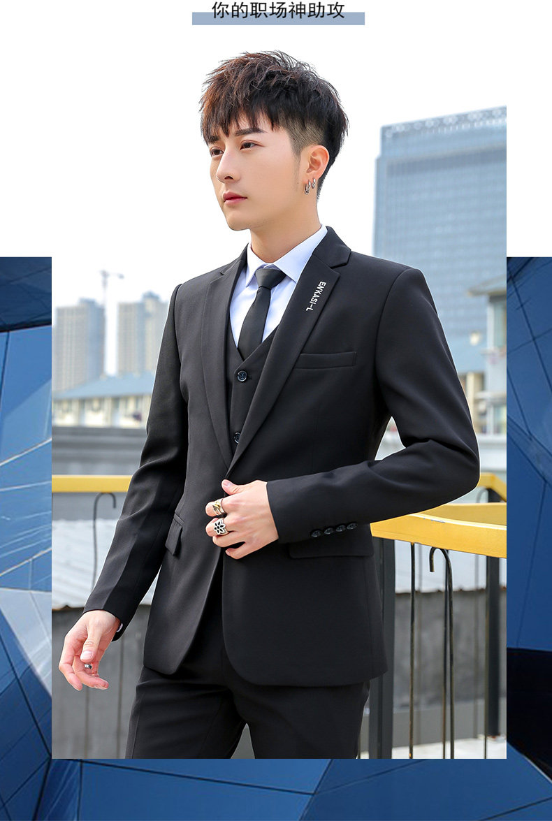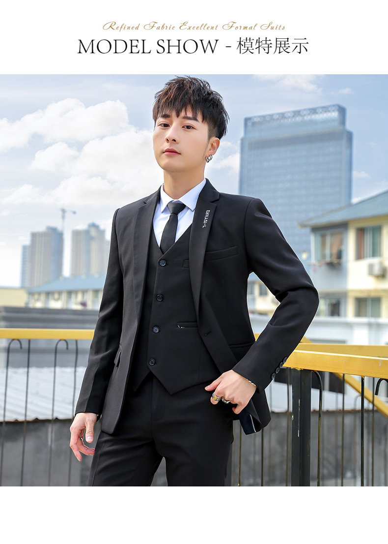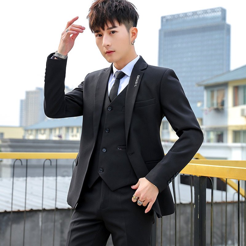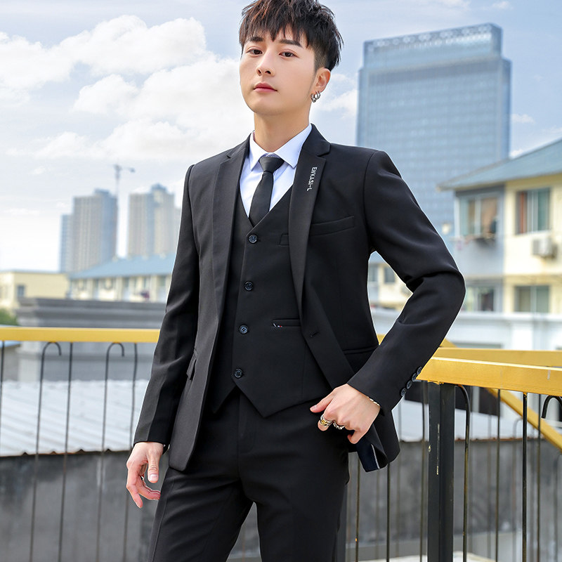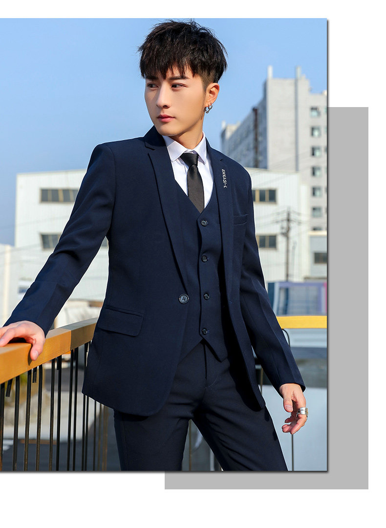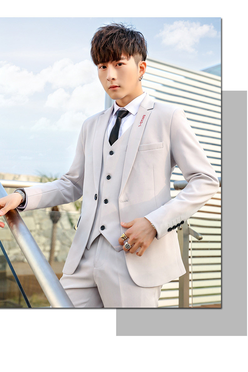 Мужской летний комплект, классический костюм, платье, пиджак классического кроя в английском стиле, 3 предмета, в корейском стиле, в британском стиле