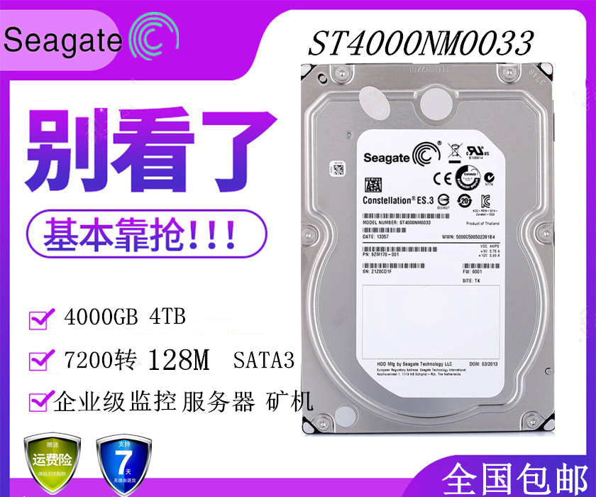 Seagate/Seagate 4T ST4000NM0033 Enterprise Уровень 3,5 -дюймовый 7200 об/мин 128 м. Вертикальные 4T