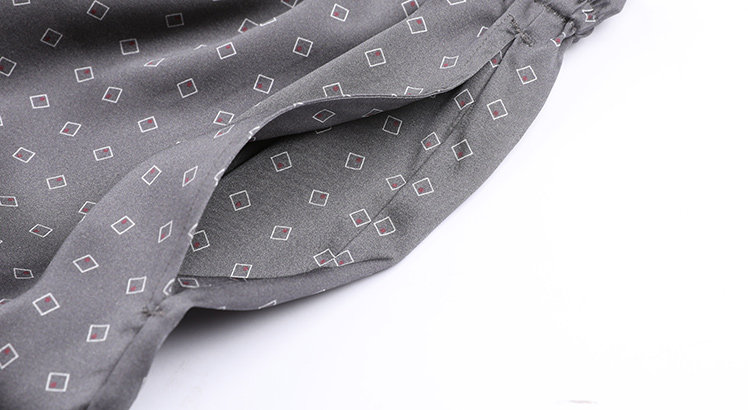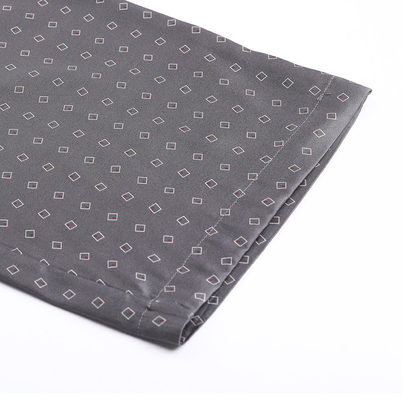 Изготовленное из легкой и нежной смеси тутового шелка и спандекса, оно имеет теплый блеск и шелковистость. Он украшен простыми геометрическими принтами, что делает его модным и качественным.