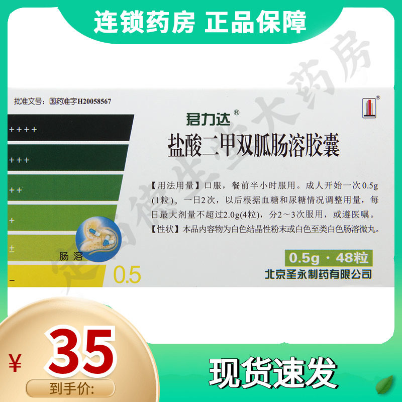 Юнлида метформина гидрохлорид капсулы с кишечнорастворимой оболочкой 0,5 г*48 капсул/коробка для больных инсулиннезависимым сахарным диабетом