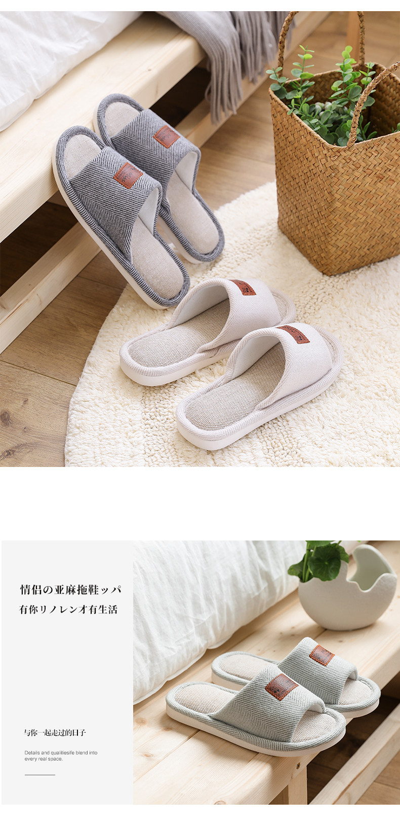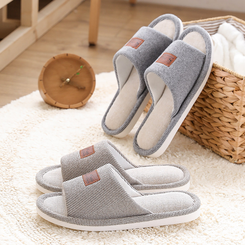 Тапочки, нескользящая обувь для влюбленных, дезодорированные слайдеры, из хлопка и льна, мягкая подошва
