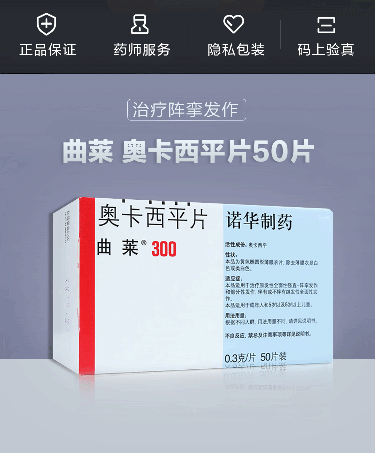 曲莱 Таблетки оказипинга 300 мг*50 таблетки/коробка взрослой эпилепсии лекарственные подлинные мышечные спазмы и судороги Частичные первичные вторичные комплексные припадки