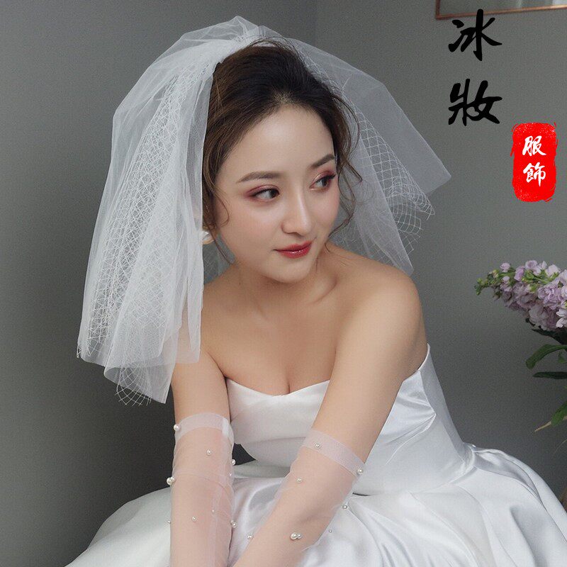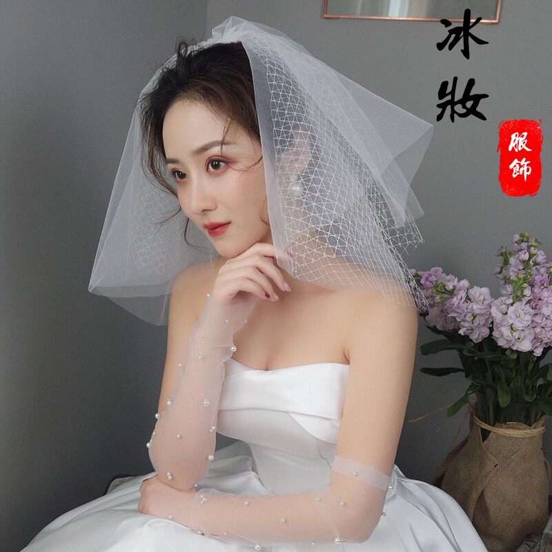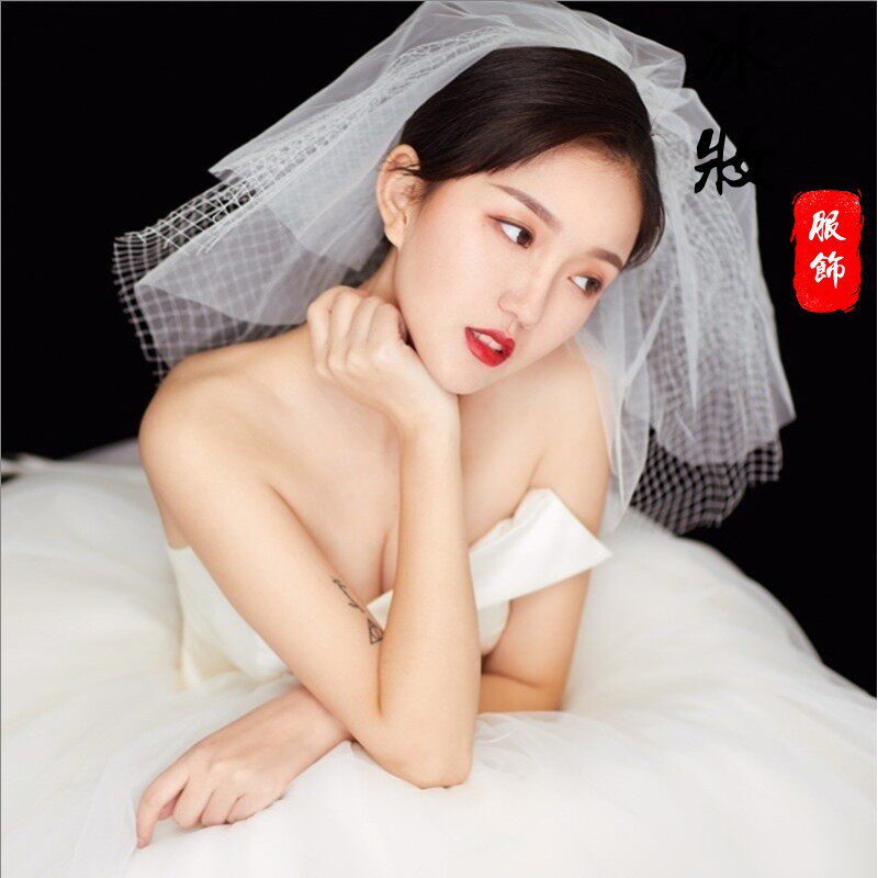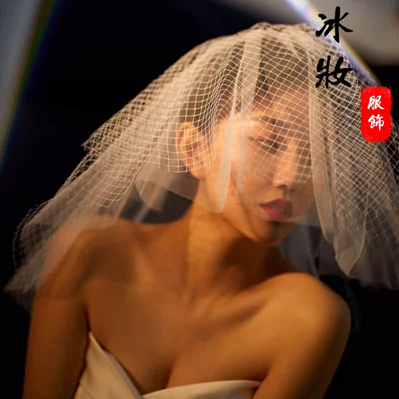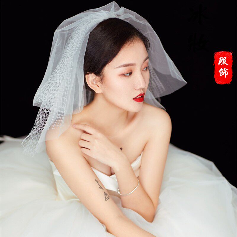 Корейская милая короткая фата невесты с ромбовидным узором, аксессуар, в корейском стиле, простой и элегантный дизайн, свадебный аксессуар