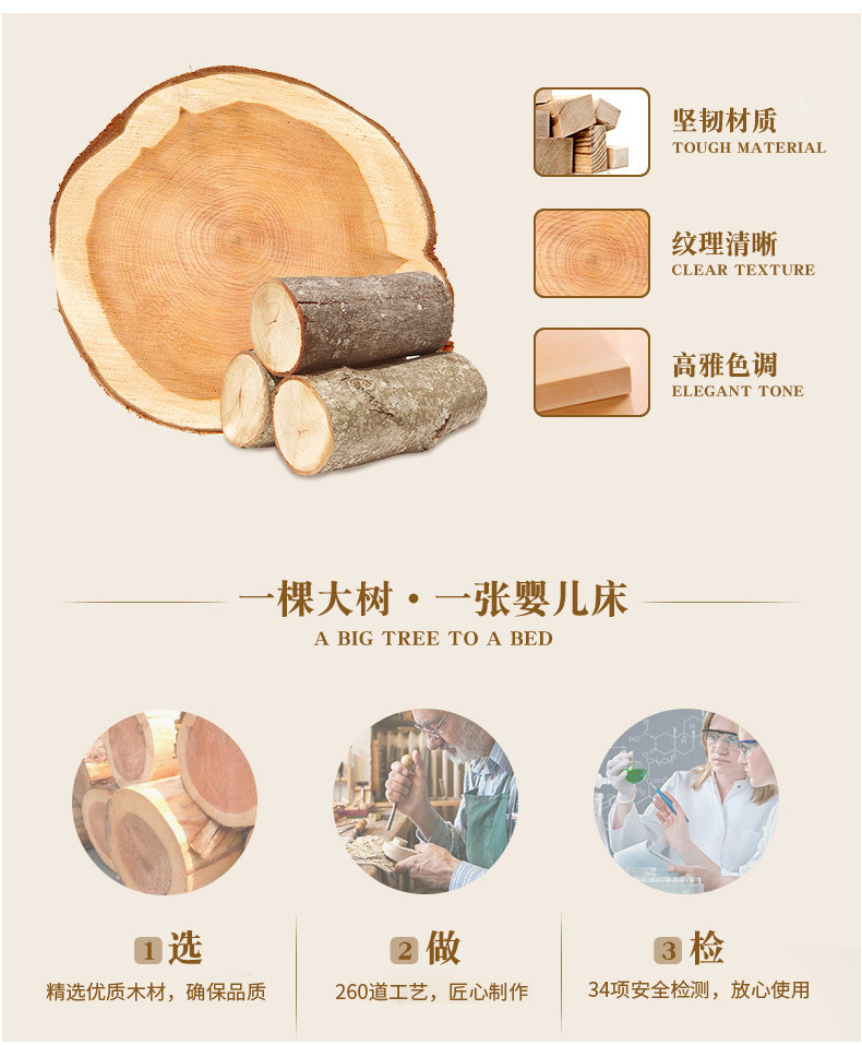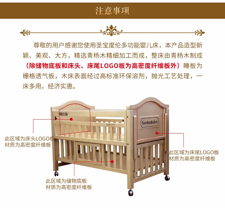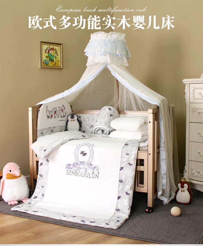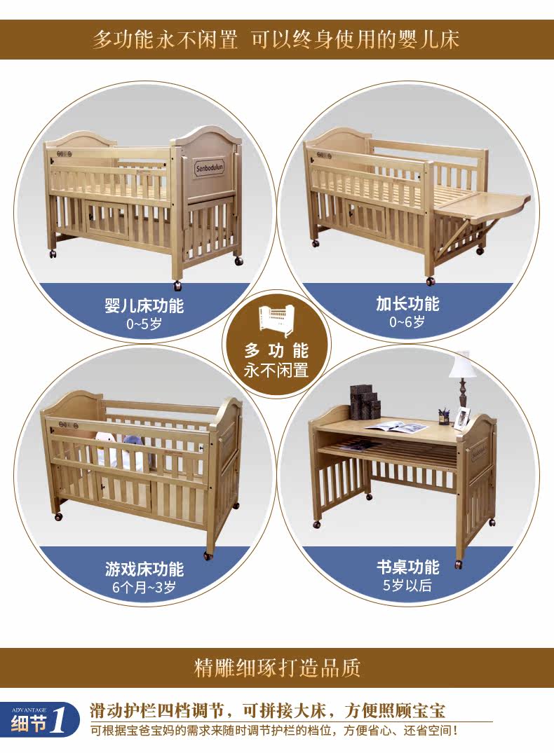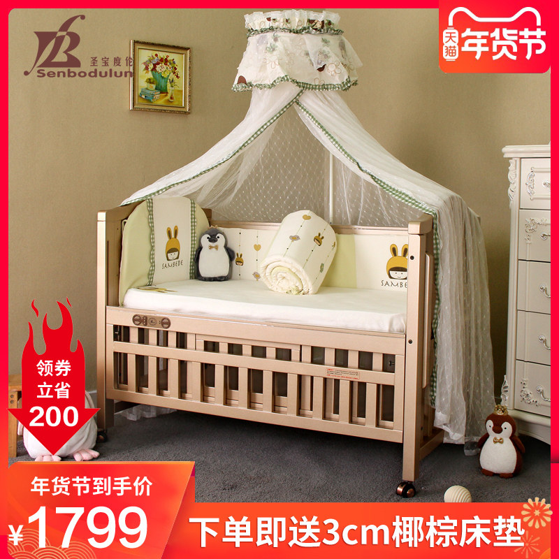 Золотая универсальная детская кроватка для приставной кровати из натурального дерева