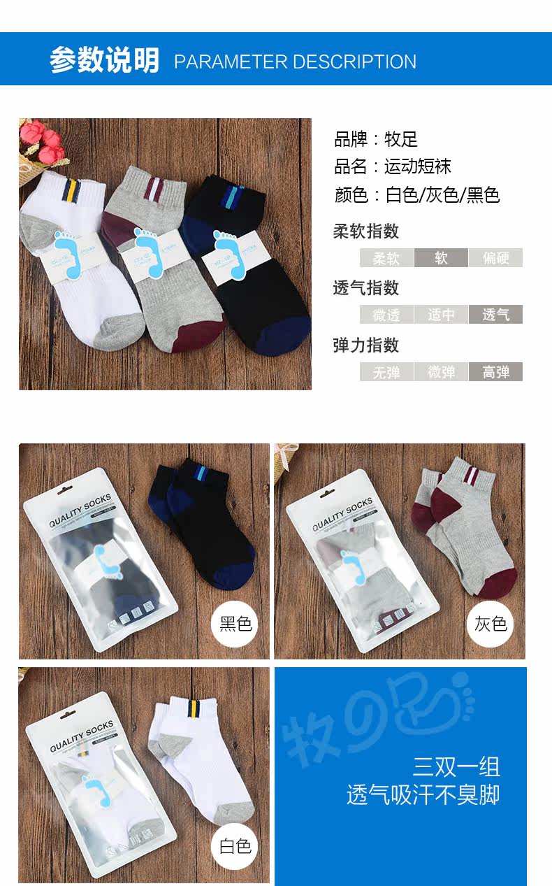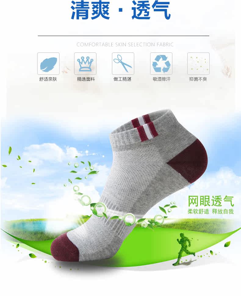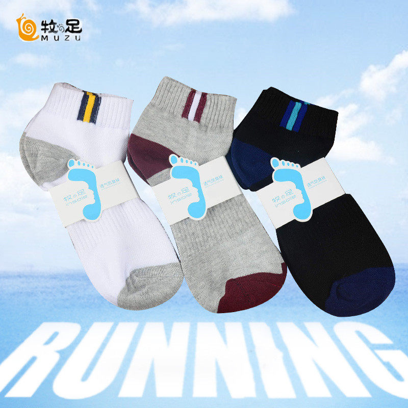 牧の足 Мужские летние антибактериальные спортивные низкие тонкие носки, впитывают пот и запах, средней длины