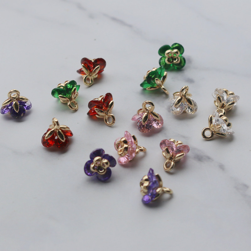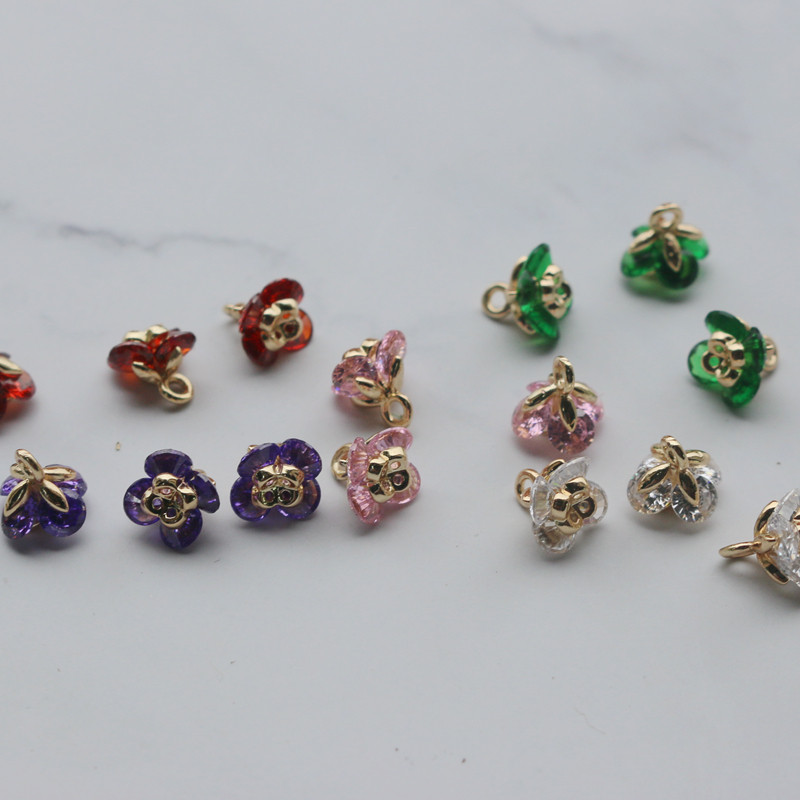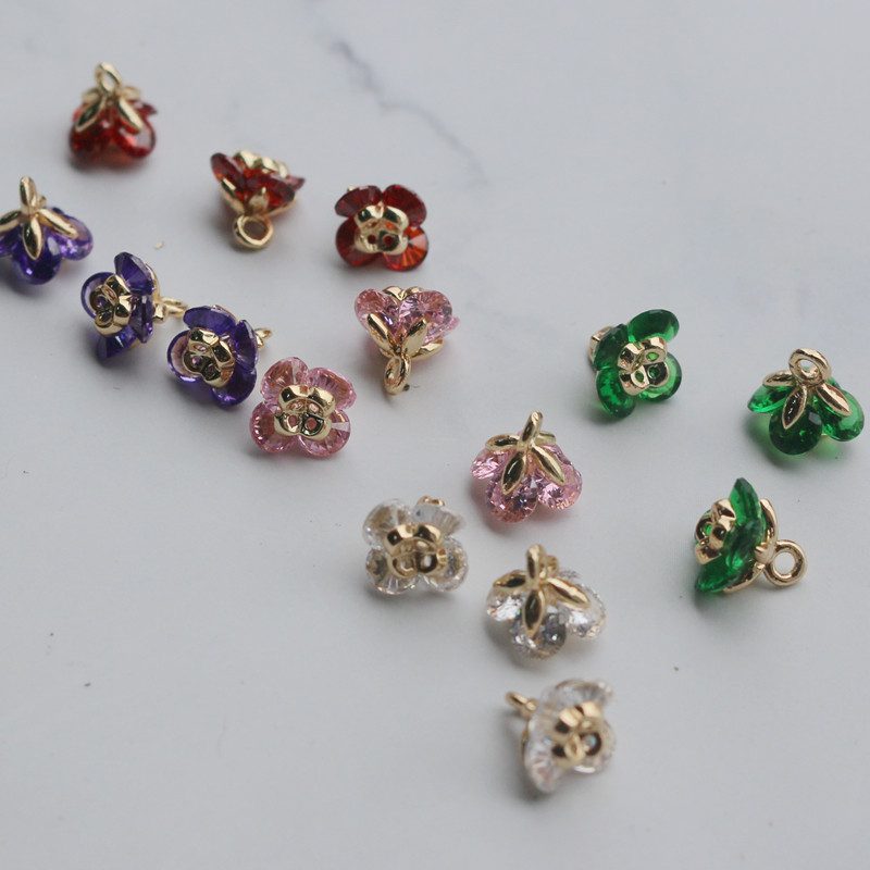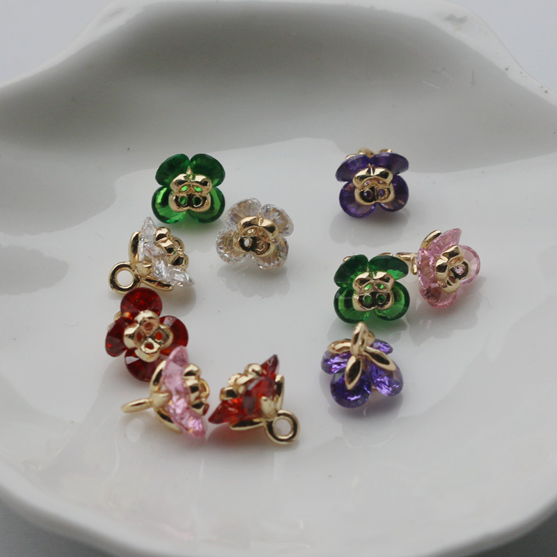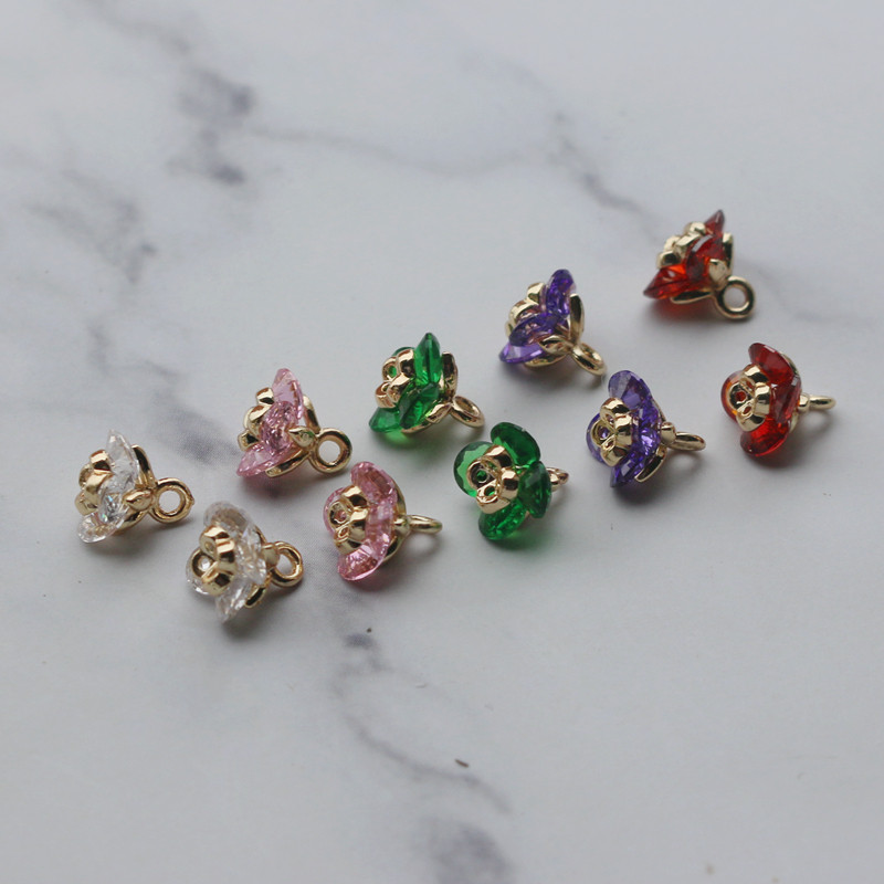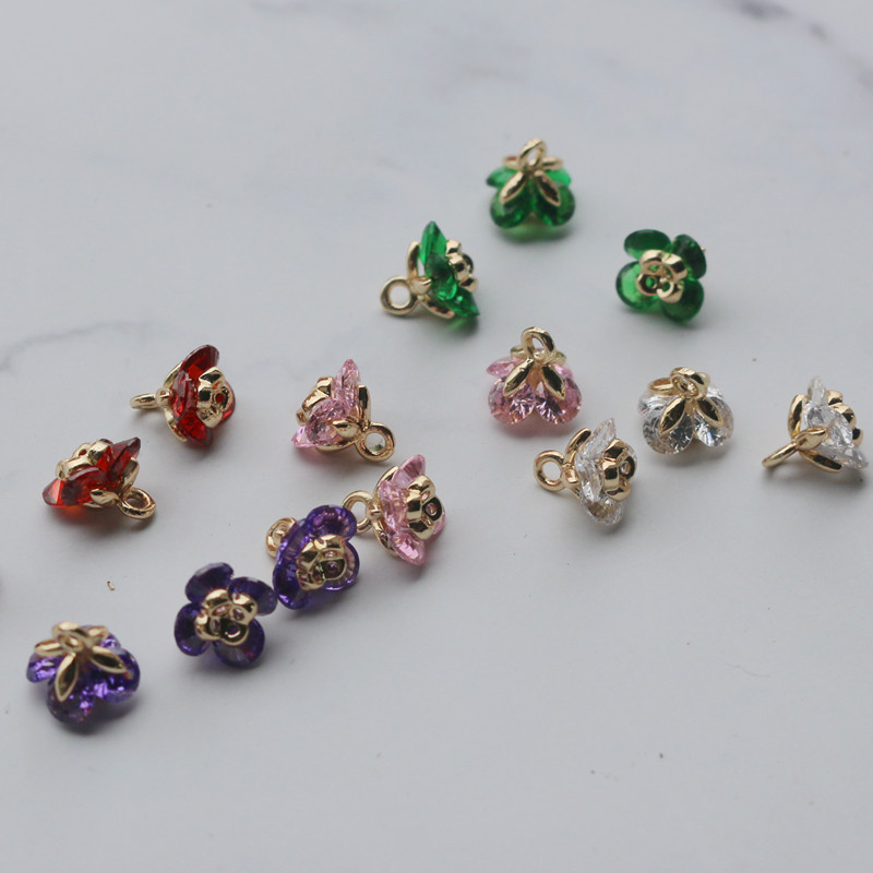 Золотые аксессуары в форме цветка, инкрустация камня с цирконом, аксессуар, подвеска ручной работы, 14 карат, DIY