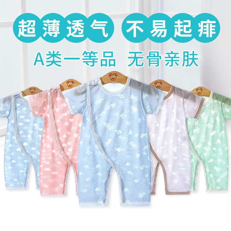 Детская летняя тонкая пижама для новорожденных, боди, дышащие штаны, короткий рукав