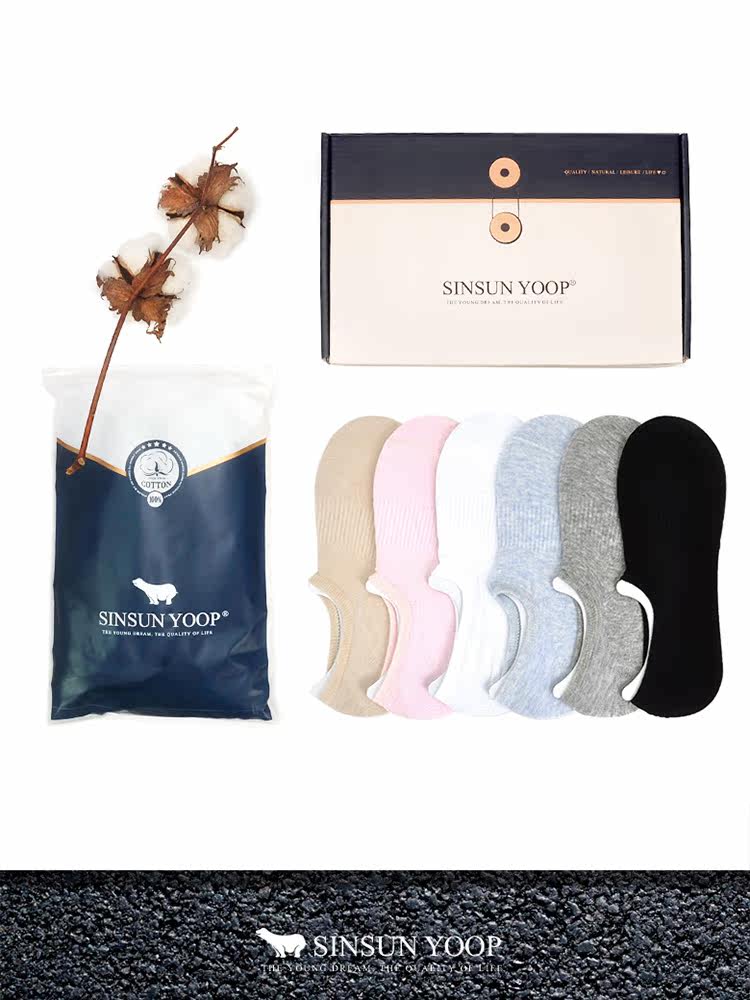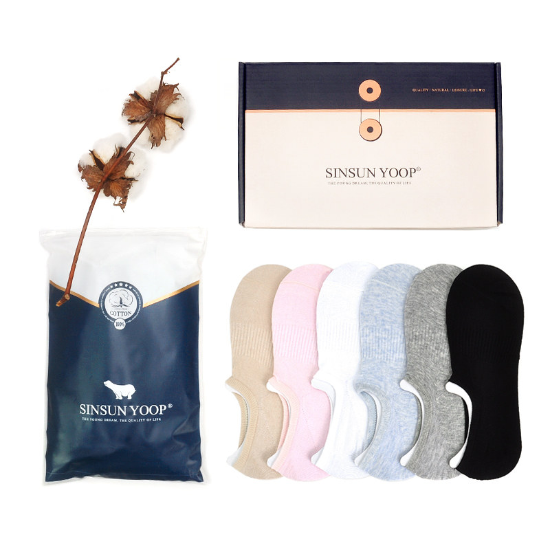 Хлопковая нескользящая подарочная коробка, летние тонкие невидимые антибактериальные носки, для бега