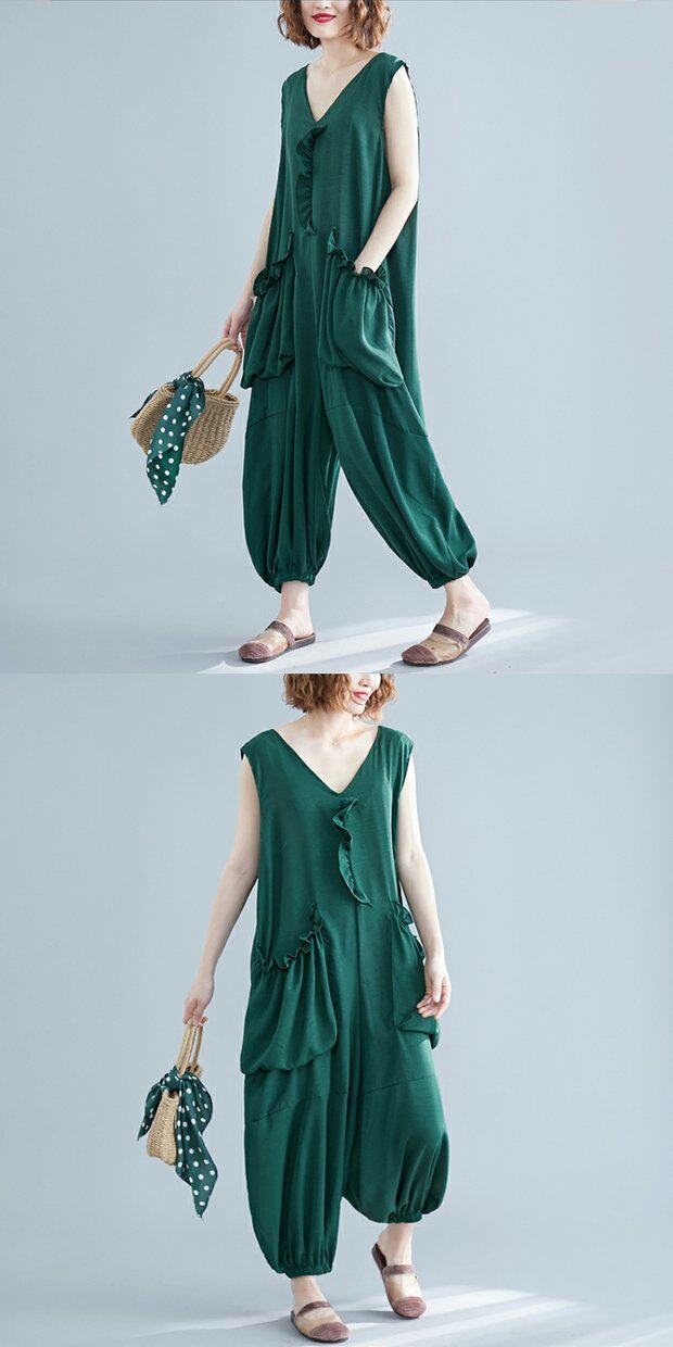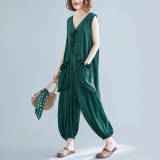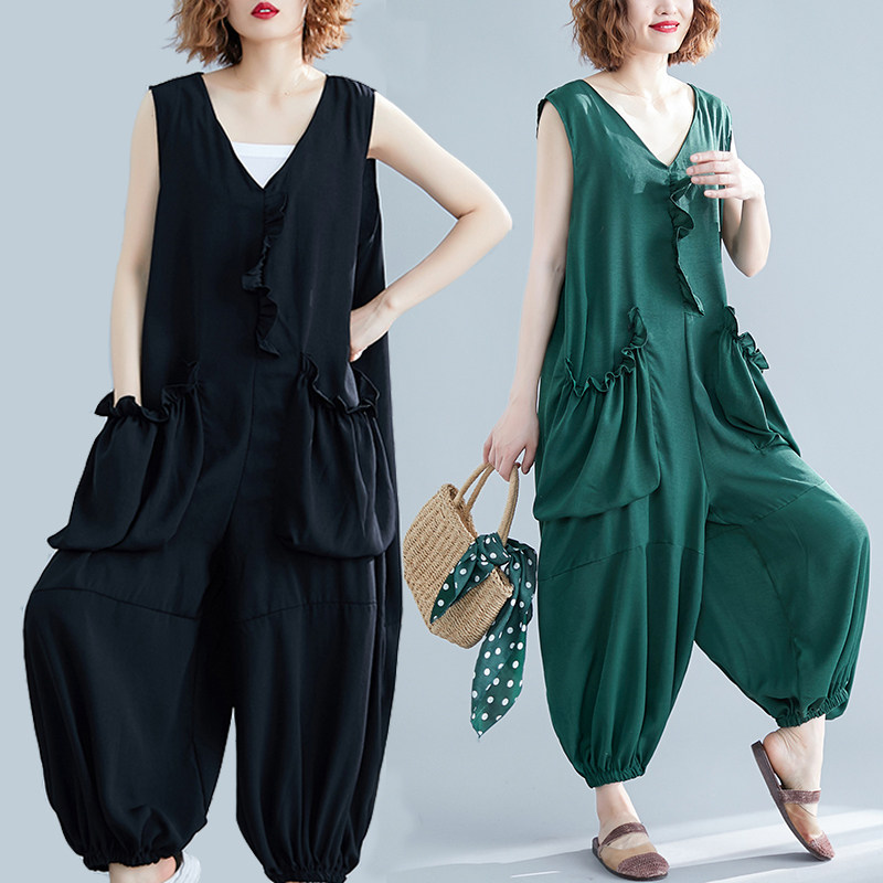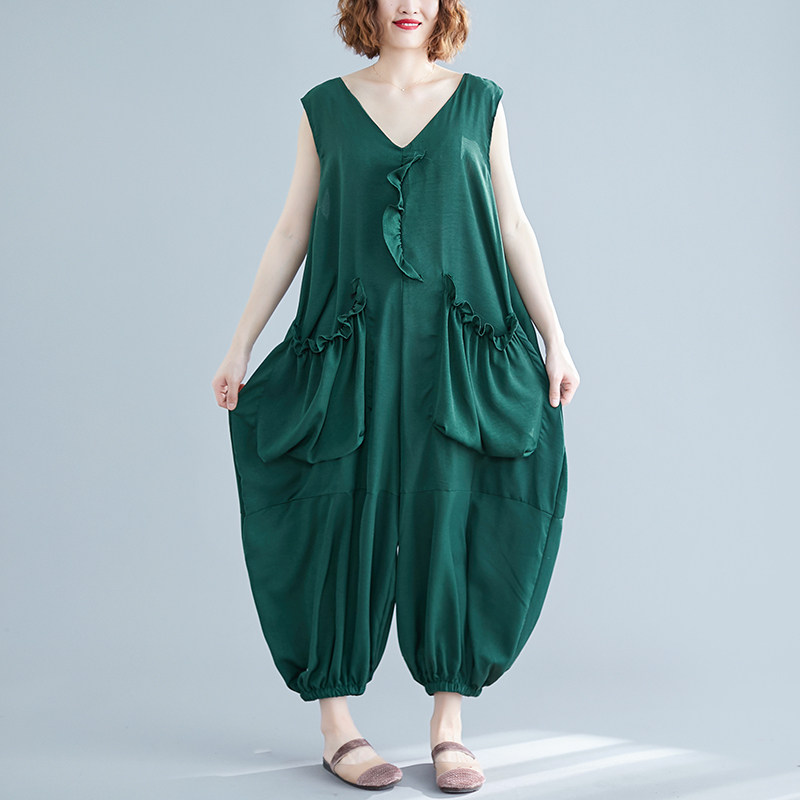 Комбинезон без рукавов, жилет, фонарь, штаны, в западном стиле, большой размер, коллекция 2021, по фигуре