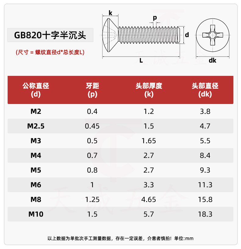 304 Полу-отсек для нержавеющей стали GB820 Phillips Pint Bolt Half Flat Head Vint M2M2,5M44M5M88