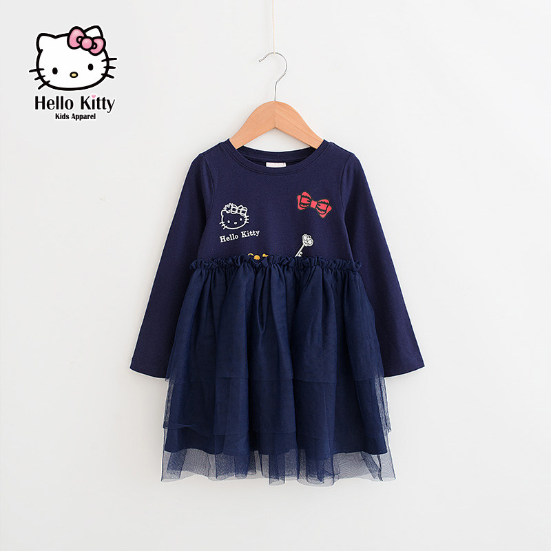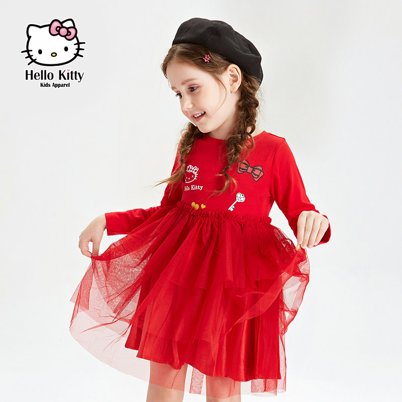 Hello Kitty, осенняя форма, лонгслив, платье, детская одежда, 2020, подходит для подростков, А-силуэт