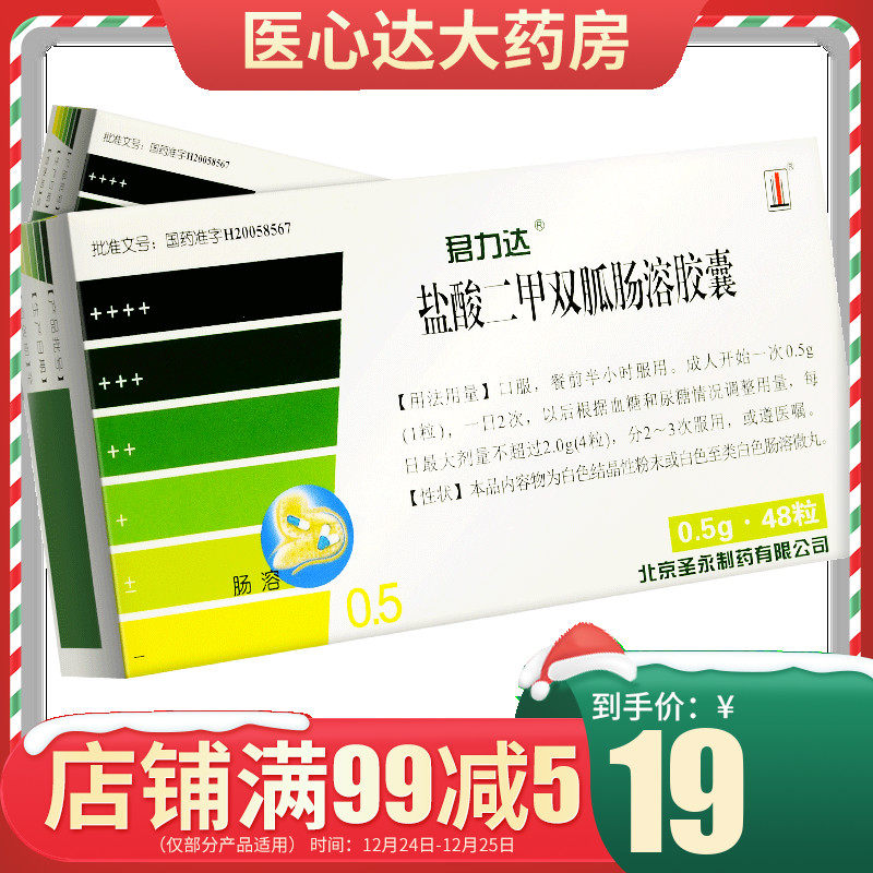 Всего 19 штук в коробке] Junlida Метформин гидрохлорид, капсулы с кишечнорастворимой оболочкой, 0,5 г * 48 капсул в коробке, диабет 2 типа, капсулы с метформином гидрохлоридом, покрытые кишечнорастворимой оболочкой.