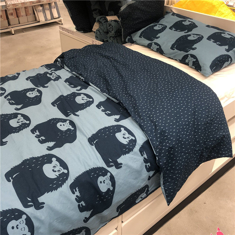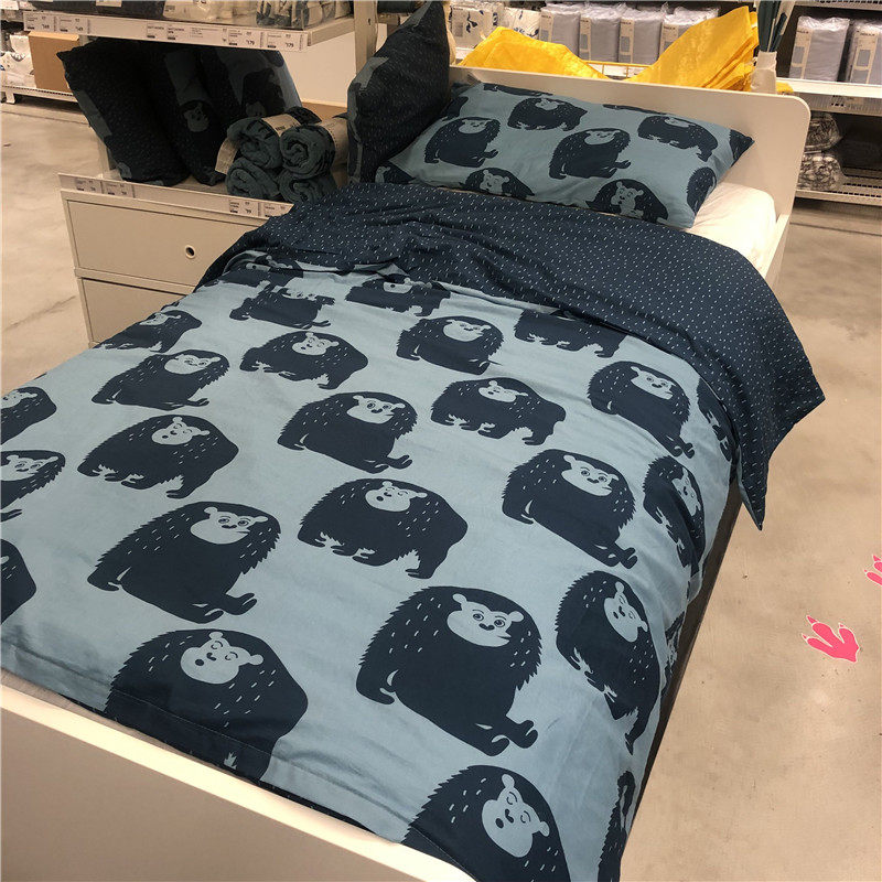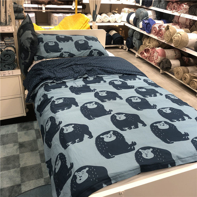 Ikea, детский пододеяльник, хлопковое одеяло, синяя наволочка, принт