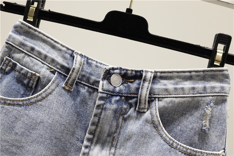Джинсовая юбка, шорты, штаны, большой размер, коллекция 2021, высокая талия, свободный крой, А-силуэт