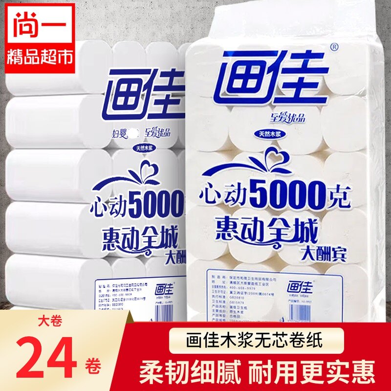 Huajia Corleless Roll Baper Collaper Roll бумага Домашняя туалетная бумага туалетная бумага Нативная древесная ткань 24 рулоны/1 подъем 9,4 кот