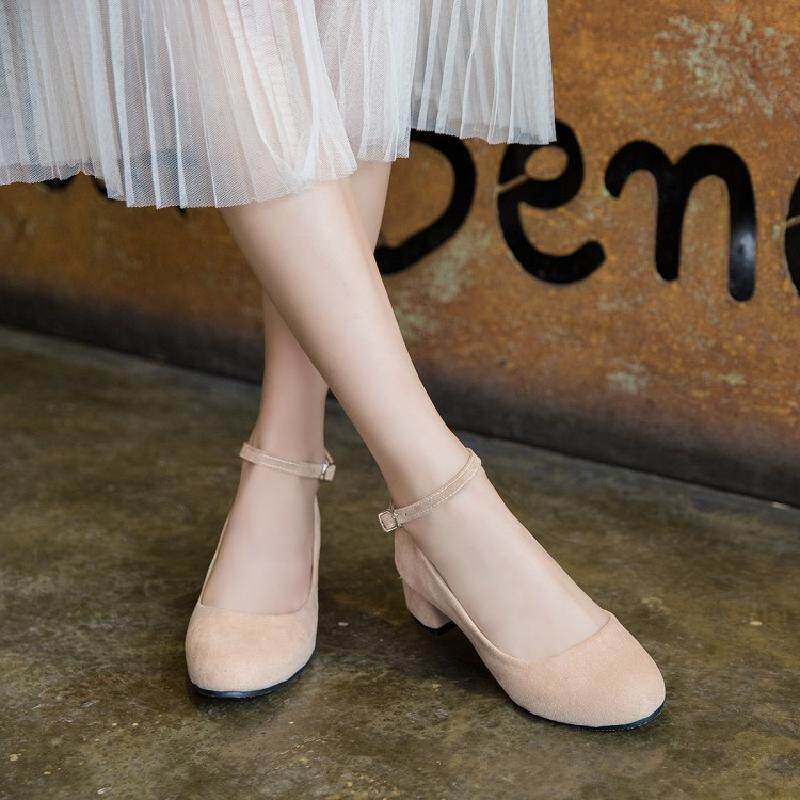 2019 Новое одно словесное вычет ретро литературный бархатный досуг карьера обнаженная средняя толстая каблука одиночная обувь большие ботинки леди