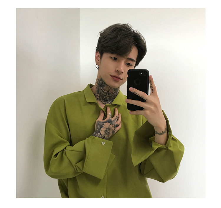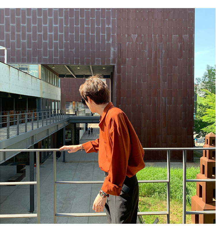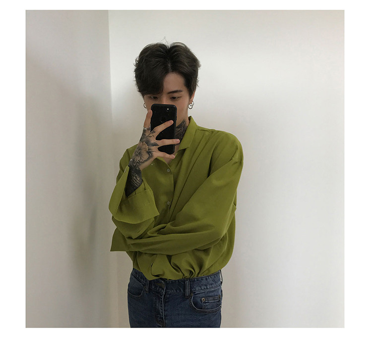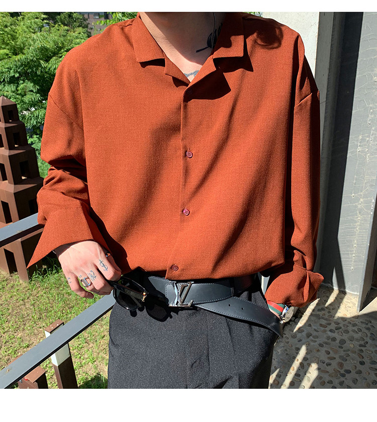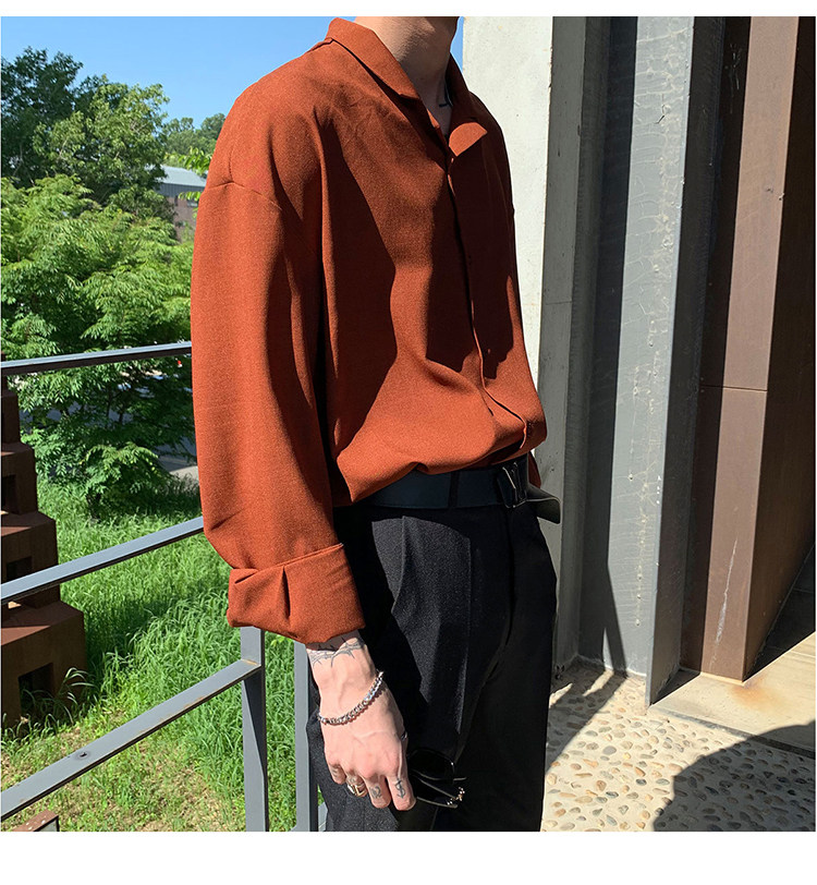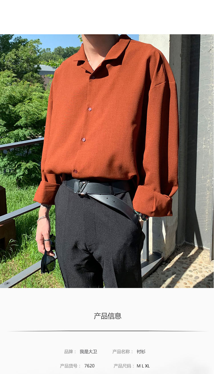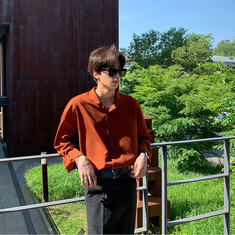 Японская шелковая универсальная рубашка, мужской трендовый демисезонный осенний лонгслив, популярно в интернете, в корейском стиле