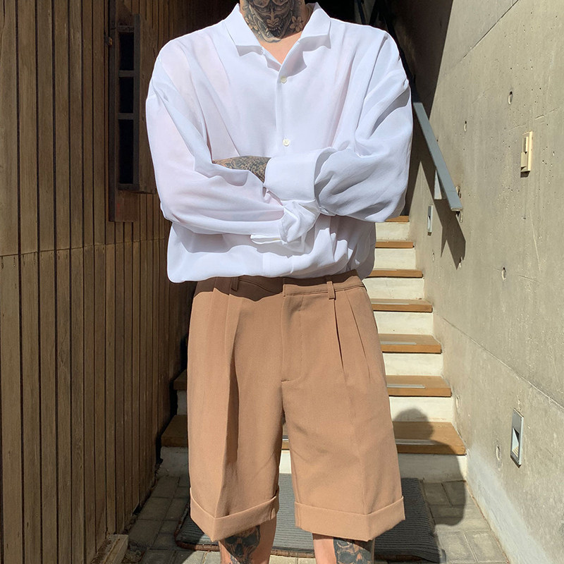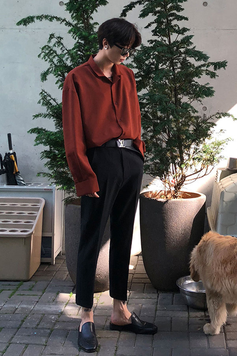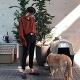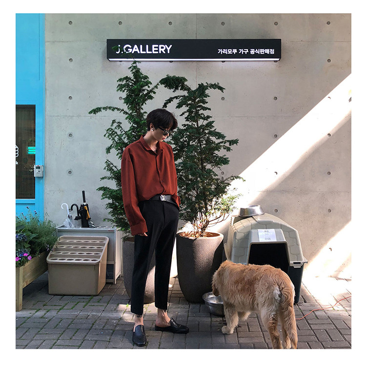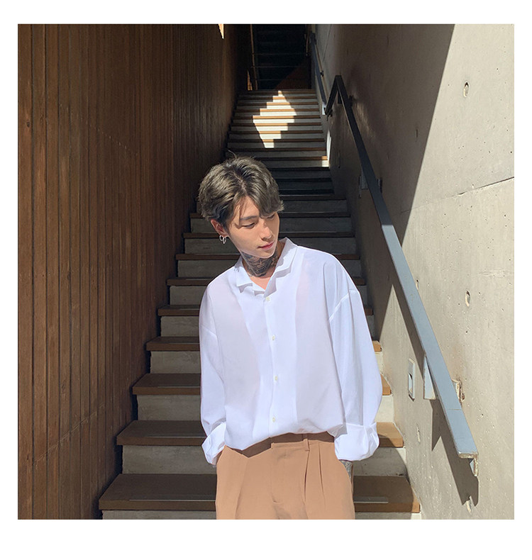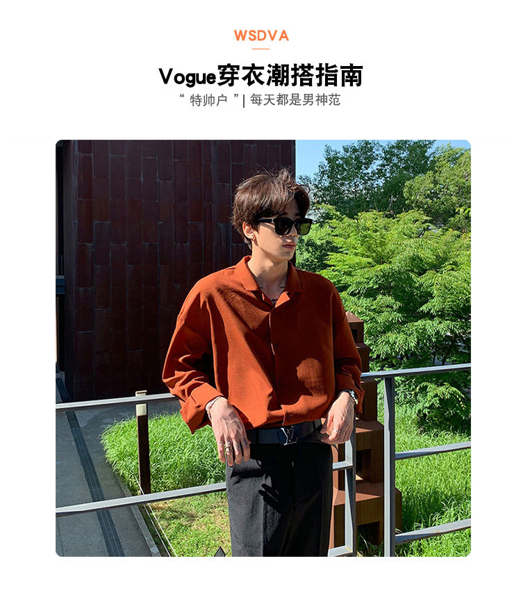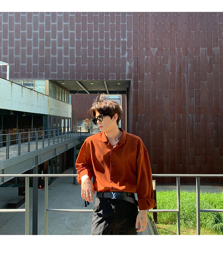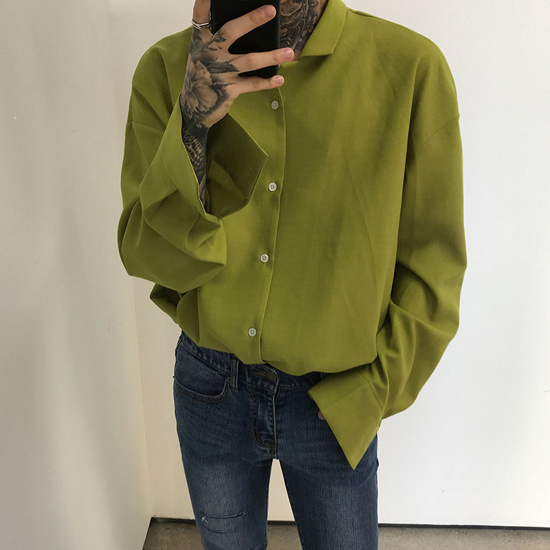 Японская шелковая универсальная рубашка, мужской трендовый демисезонный осенний лонгслив, популярно в интернете, в корейском стиле