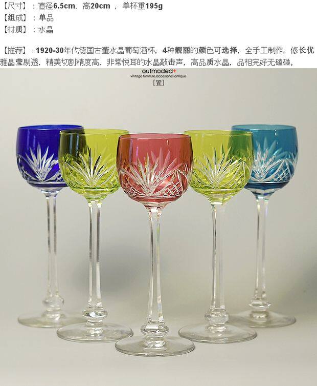 Немецкий антикварный цветный винный бокал 1920-30 гг.