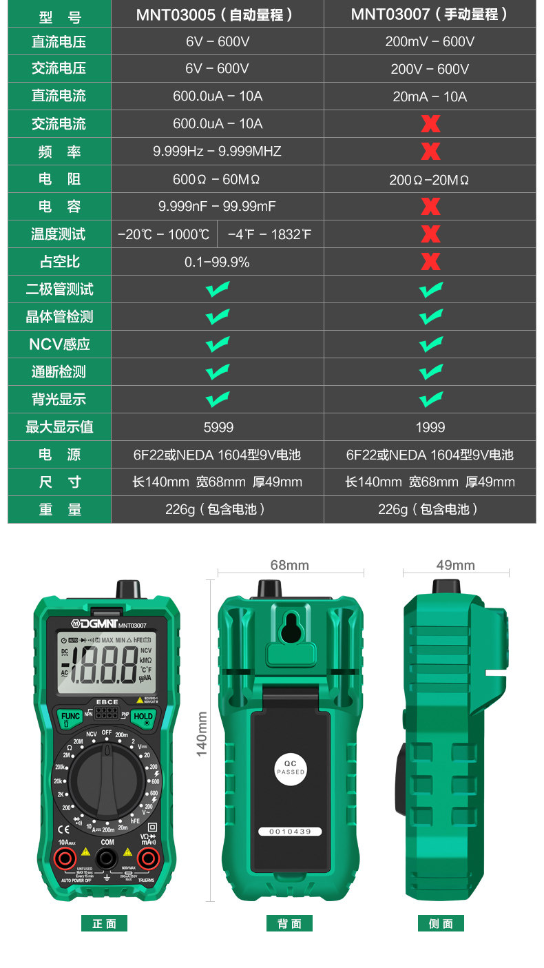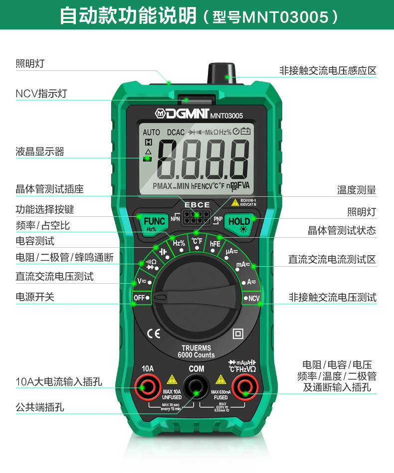 | Цвет: | [Автоматический диапазон+функция измерения температуры] Интеллектуальная анти -переживаемая мультиметра MNT03005, [Ручной диапазон] Интеллектуальная анти -переживаемая мультиметра MNT03007 |